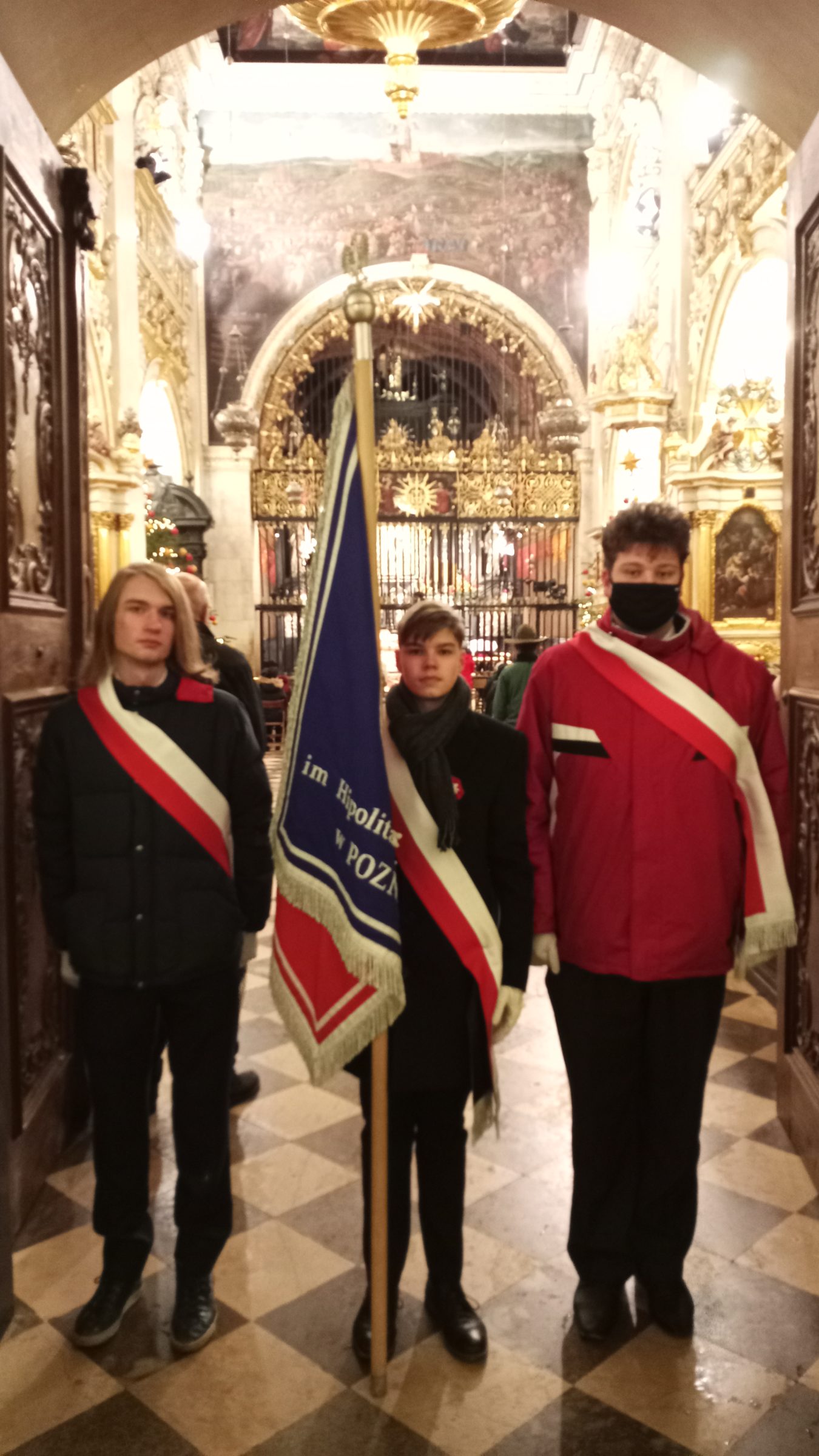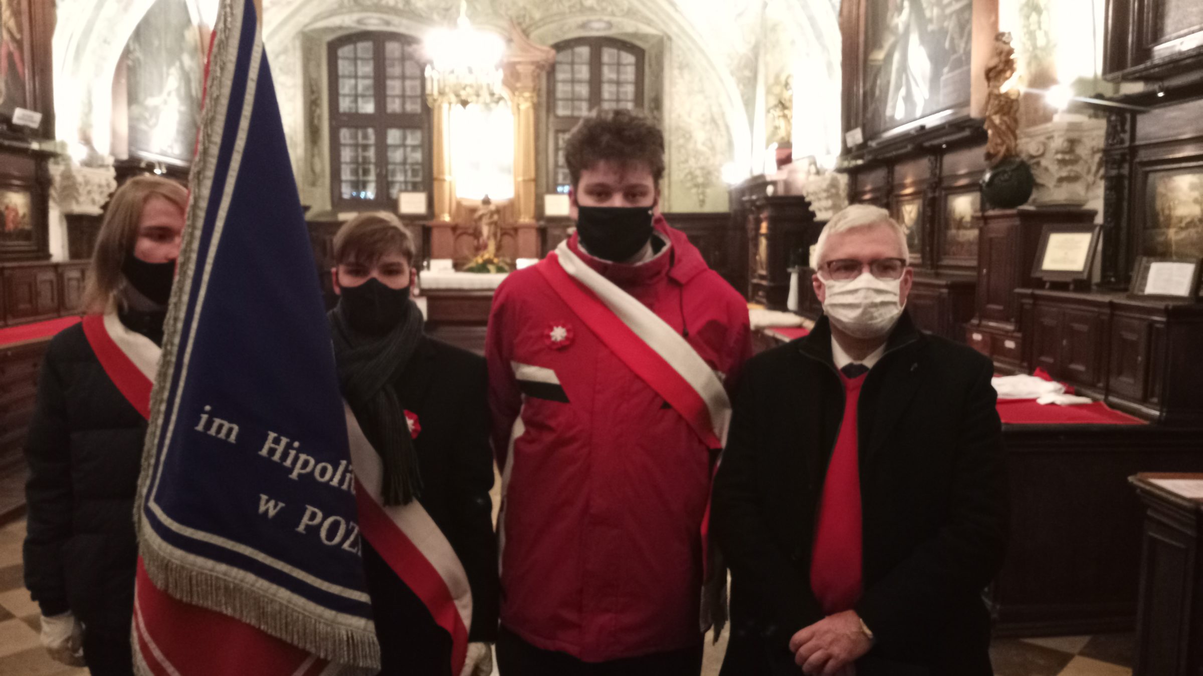 Poczet sztandarowy godnie reprezentowali: Mikołaj Dunaj (3A), Jędrzej Łączny (3GA) oraz Mateusz Nowicki (4A).
