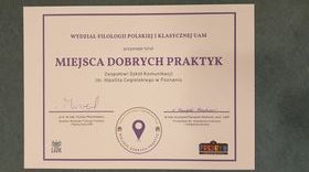Szkoła uzyskała tytuł: „Miejsce dobrych praktyk” przyznany przez Wydział Filologii Polskiej i Klasycznej.