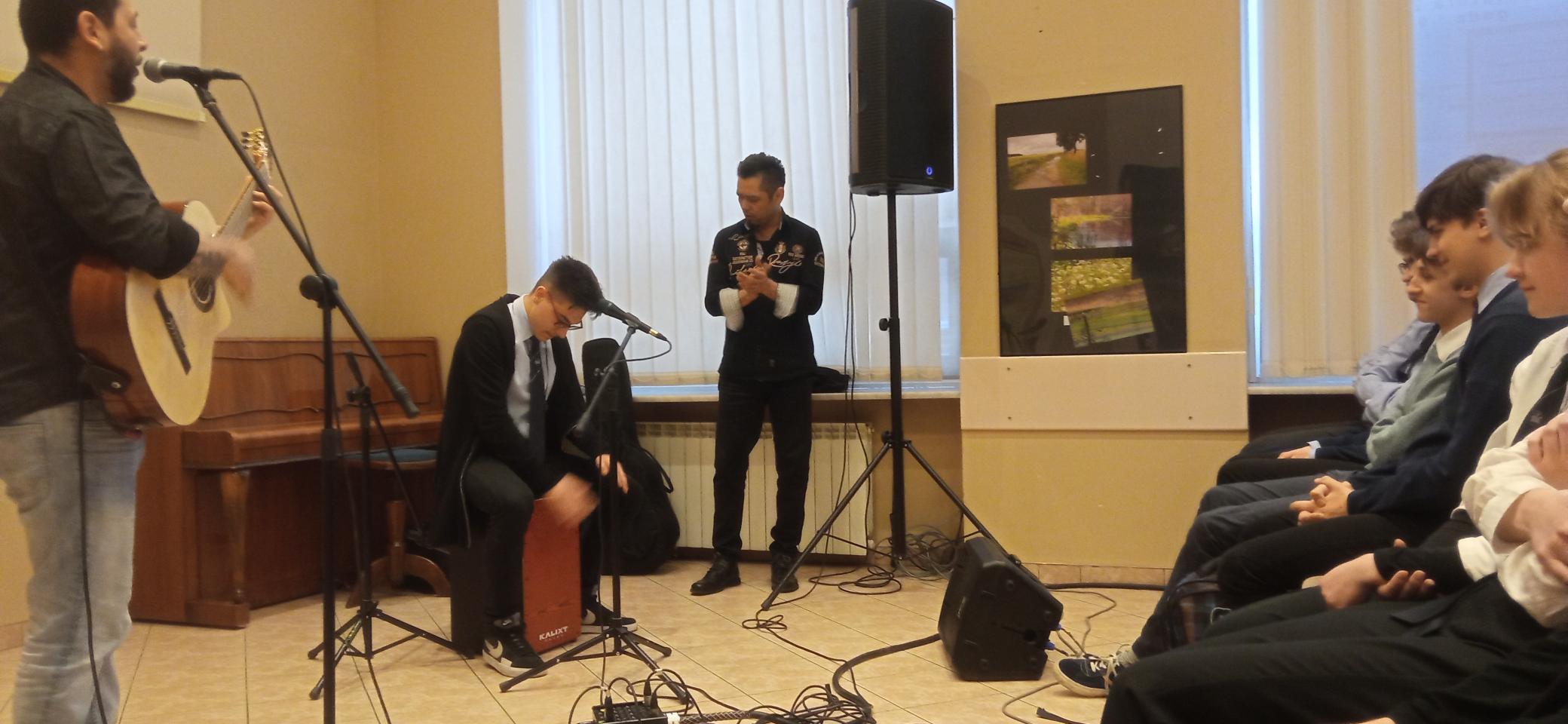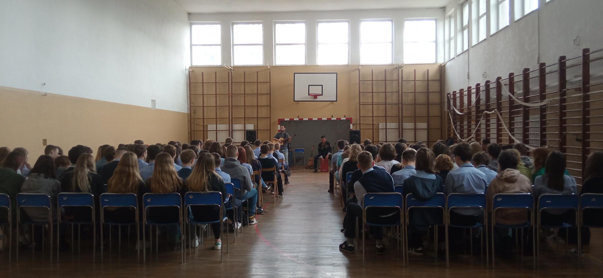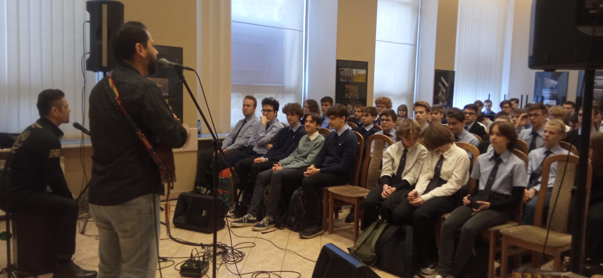 Wielkim wydarzeniem okazał się koncert muzyki meksykańskiej, którego mogli wysłuchać zarówno uczniowie na ul.Bukowskiej ( 11.04.) jak i uczniowi na ul.Fredry ( 12.04.). Roman Mendez i Jose Zepeta zabrali nas w muzyczną podróż po krajach hiszpańskojęzycznych. Opowiedzieli o tradycyjnych instrumentach i zaśpiewali popularne piosenki: od hiszpańskiego flamenco i „Bamboleo”, przez kubańską piosenkę „Chan chan”, aż po meksykańską piosenkę „La Llorona”.
