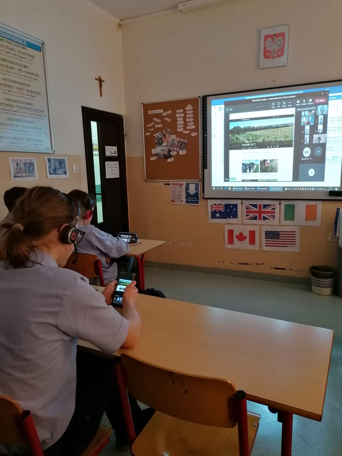 22 kwietnia klasa dwujęzyczna 1B wraz ze swoim nauczycielem i nauczycielką języka angielskiego wzięła udział w spotkaniu online z pracownikiem ambasady Stanów Zjednoczonych w Warszawie w ramach programu „Meet America”. Celem programu jest przybliżenie tematyki związanej z ww. krajem polskiej publiczności . Dyplomaci prowadzący takie spotkania skupiają się na szeroko rozumianej tematyce kulturalnej, związanej z relacjami pomiędzy Stanami Zjednoczonymi a Polską przedstawiając kulturę amerykańską z perspektywy własnych zainteresowań.