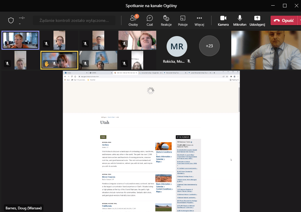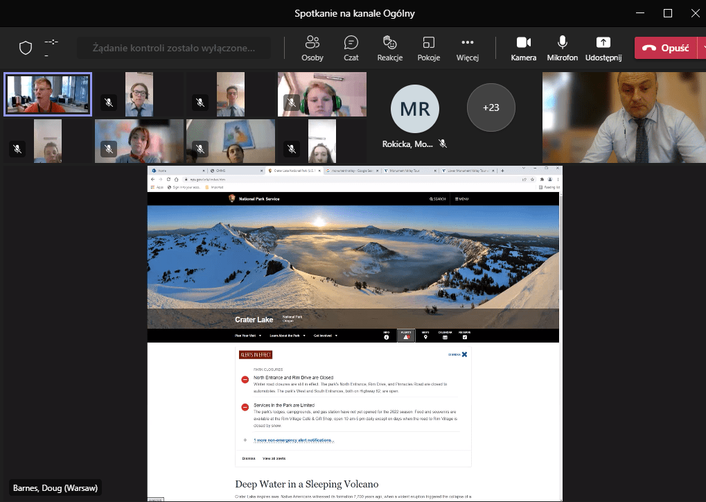 Naszym gościem był Pan Doug Barnes, który prezentował parki narodowe i krainy geograficzne zachodniego wybrzeża dzieląc się z uczniami swoją wiedzą i własnymi doświadczeniami odpowiadając jednocześnie na ich pytania. Poza tym Pan Barnes odpowiadał o charakterze swojej pracy w ambasadzie i w reakcji na spontaniczne pytania poruszył niektóre aspekty codziennego życia w swojej ojczyźnie.