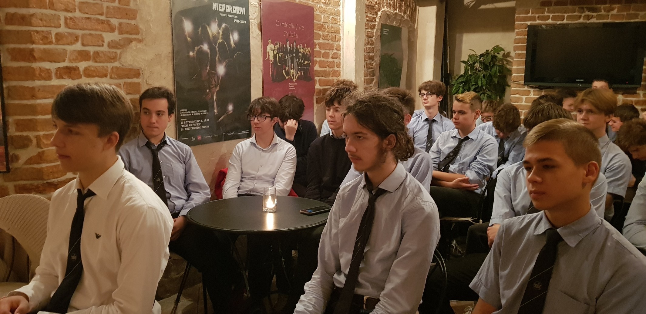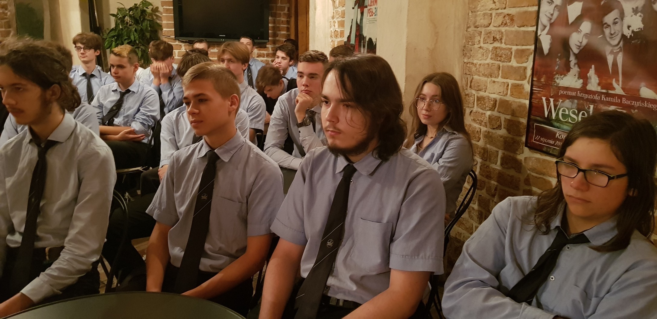 Spotkanie rozpoczęło się około godziny 9:00 poczęstunkiem przygotowanym przez panie bibliotekarki i polonistkę. Chwilę później autorzy przedstawili swoje krótkie biografie, uwzględniając w nich motywy, którymi kierują się podczas tworzenia oraz wady i zalety bycia poetą. Pan Marek zaskoczył młodzież swoimi wypowiedziami, w które często były wplatane “gierki słowne” lub komiczne żarty.