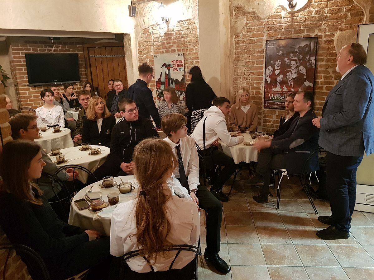 Przed spotkaniem uczestnicy zobaczyli szkolne makiety kolejowe. Spotkanie rozpoczął dyrektor szkoły Ryszard Pyssa witając wszystkich serdecznie, a następnie tradycyjnie przy pączku, kawie i herbacie dyskutowaliśmy o tym, co działo się w naszych szkołach w ostatnich dwóch latach. Było to bardzo owocne spotkanie. Uzgodniliśmy, że konkurs wiedzy o Hipolicie Cegielskim w tym roku szkolnym przeprowadzi szkoła w Środzie Wlkp.