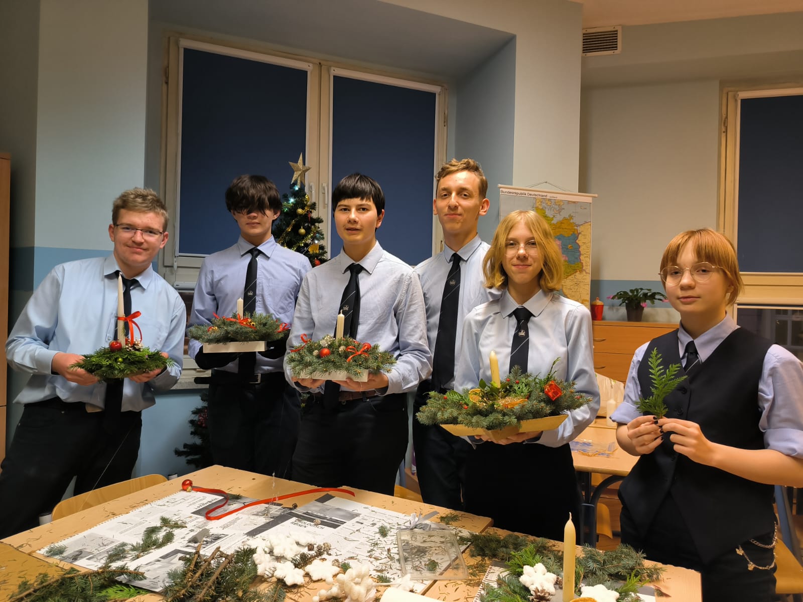 Szczególne podziękowania dla uczniów z kółka artystycznego, którzy pod opieką Pani Ewy Tarabasz wykonali piękne stroiki.