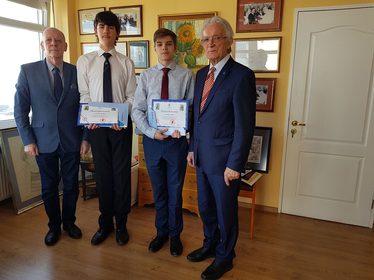 Miło nam poinformować, że 9 lutego dwoje uczniów szkoły: Mikołaj Dunaj i Szymon Kujawa z klasy 4A otrzymali od Towarzystwa im. Hipolita Cegielskiego specjalne podziękowania za czteroletnią aktywną pracę na rzecz naszego Patrona. Serdecznie gratulujemy.