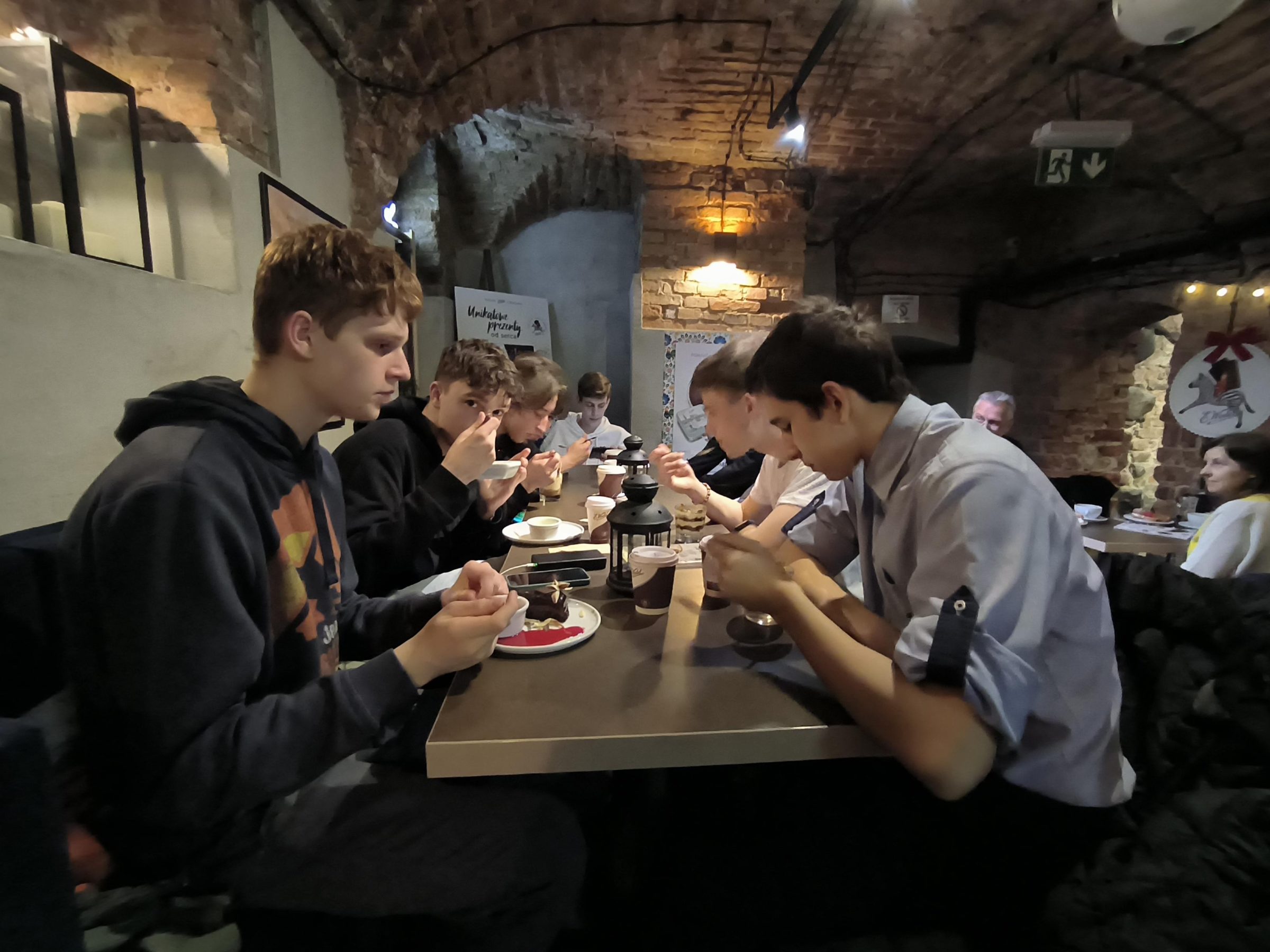 Na zakończenie wymiany uczestnicy projektu przy wsparciu rodziców przygotowali polski wieczór z degustacją polskich dań, który rozpoczął się występem muzycznym, przygotowanym przez uczniów naszej szkoły. Po koncercie uczniowie zaprezentowali zgromadzonej publiczności efekty wspólnych działań projektowych. Uroczystość została zakończona wspólnymi rozmowami w naszej piwnicy artystycznej.