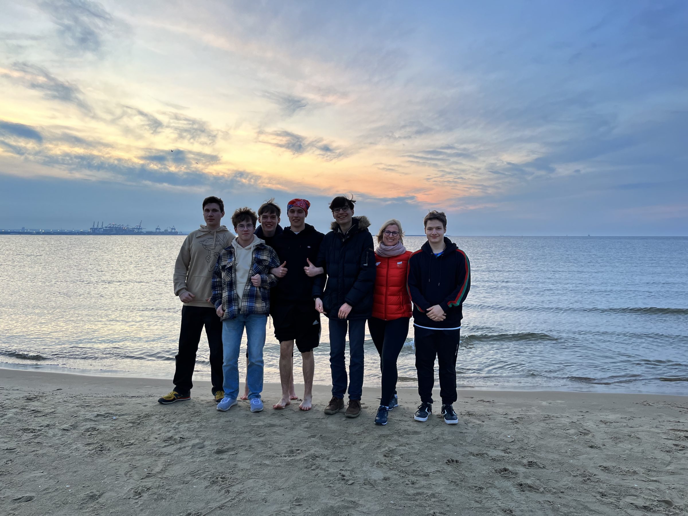 Po powrocie i posiłku, część grupy udała się w wychowawczyniami na pobliską plażę, gdzie mogli podziwiać piękny zachód słońca, czy też zamoczyć nogi w lodowatych wodach Bałtyku.
