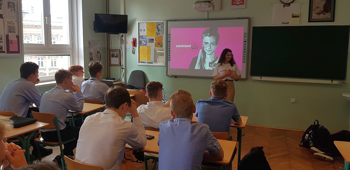 19 września 2023 r. gościliśmy w szkole Ambasadorkę Zwolnieni z Teorii. W spotkaniu uczestniczyli uczniowie klasy 3A i 4F.