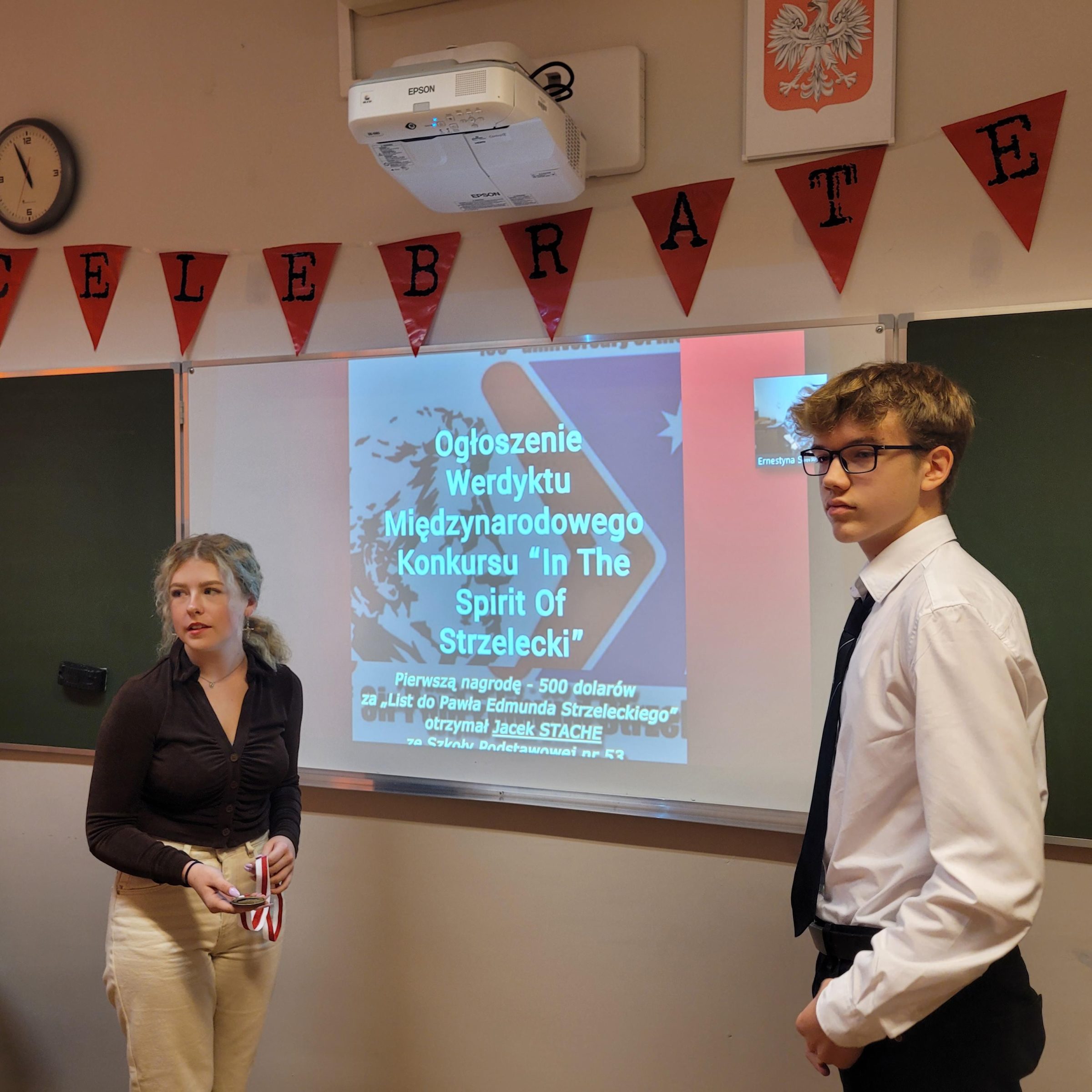 Podczas spotkania nastąpiło ogłoszenie wyników międzynarodowego konkursu literackiego „In the spirit of Strzelecki”, którego zwycięzcą został uczeń klasy 1E Jacek Stache. Jackowi serdecznie gratulujemy i życzymy dalszych sukcesów.