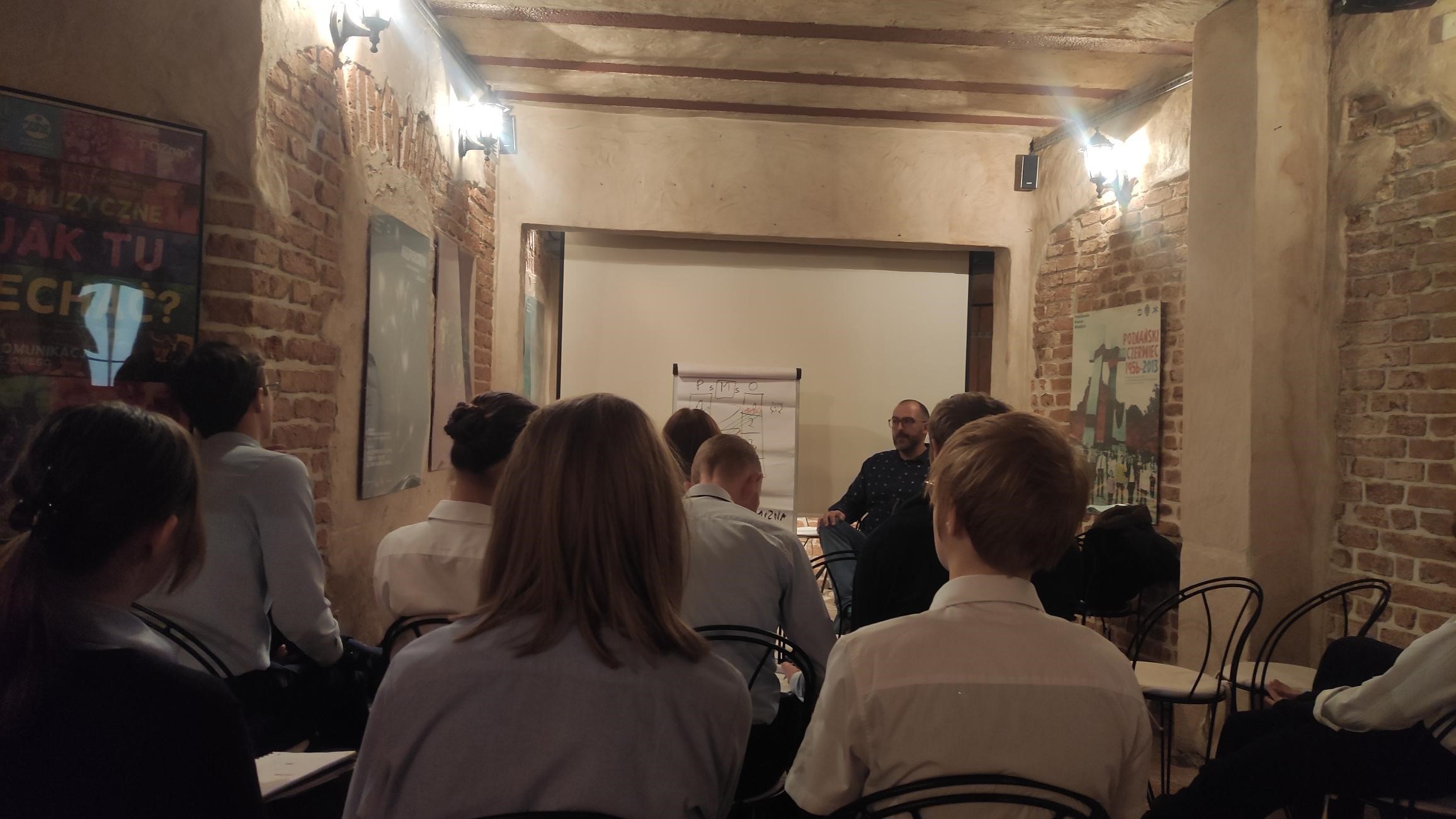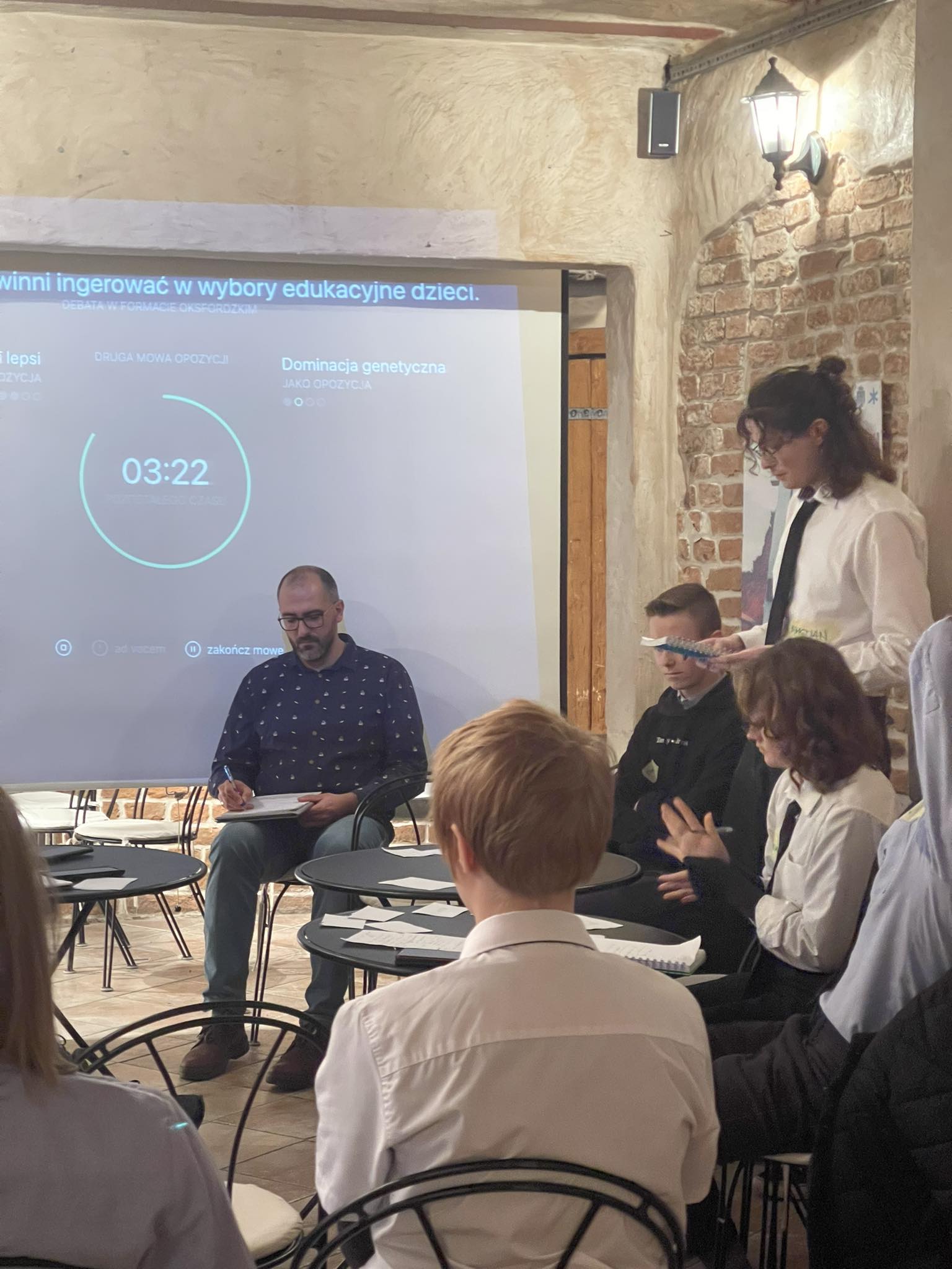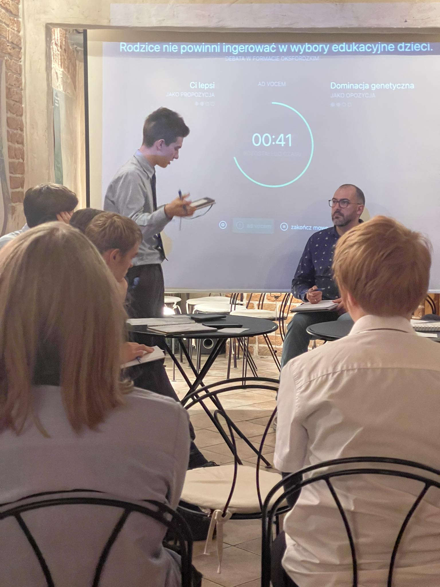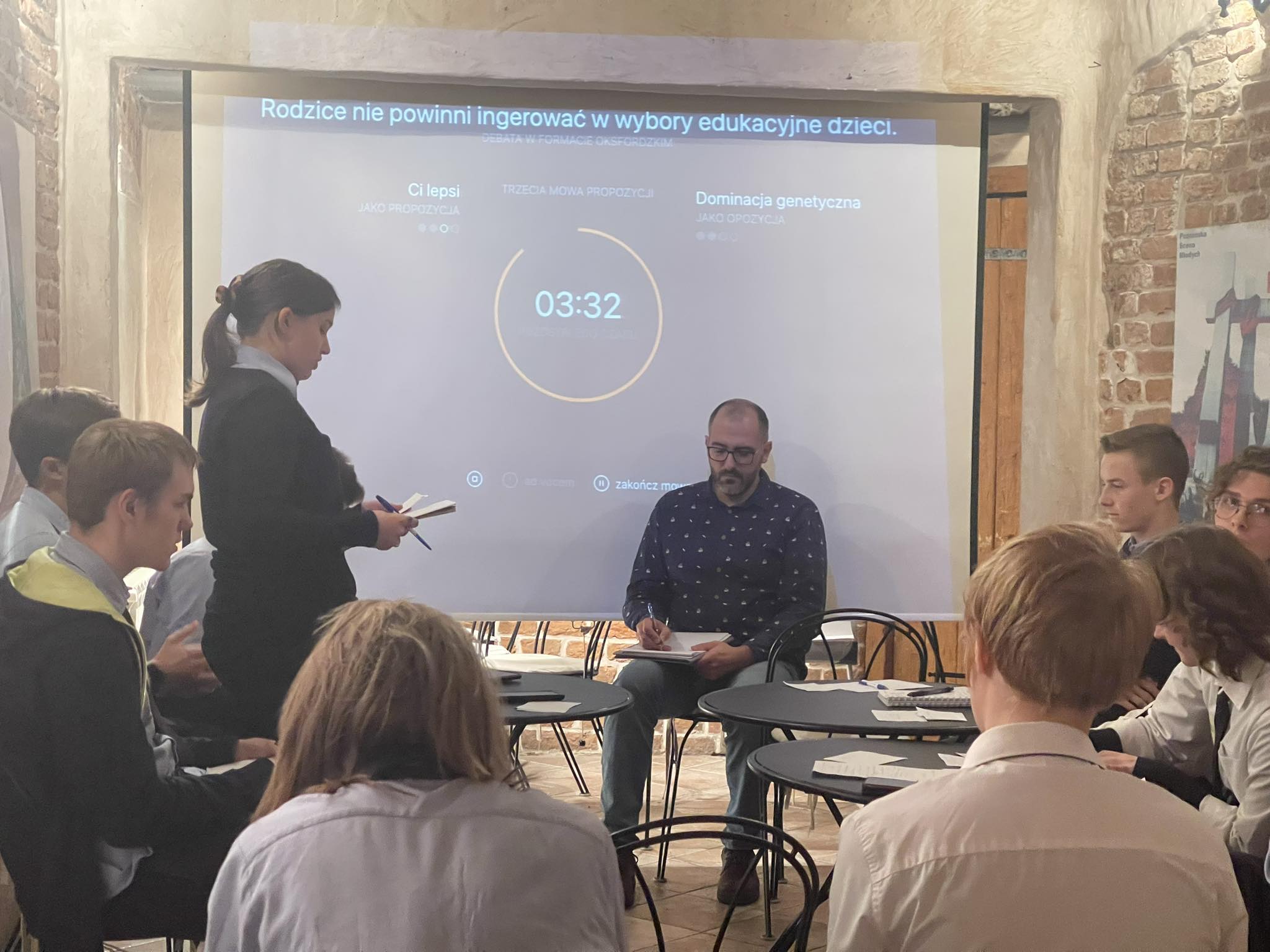 W poniedziałek 23 października 2023 roku w piwnicy artystycznej naszej szkoły odbyły się warsztaty z debatowania w formule oksfordzkiej. Poprowadził je dla nas sam prezes Fundacji „Projekty Edukacyjne” — Jan Piosik. Podczas tych kilku pracowitych godzin nauczyliśmy się zarówno podstawowych zasad debaty w formule oksfordzkiej, jak i dobrych praktyk podczas wystąpień publicznych.