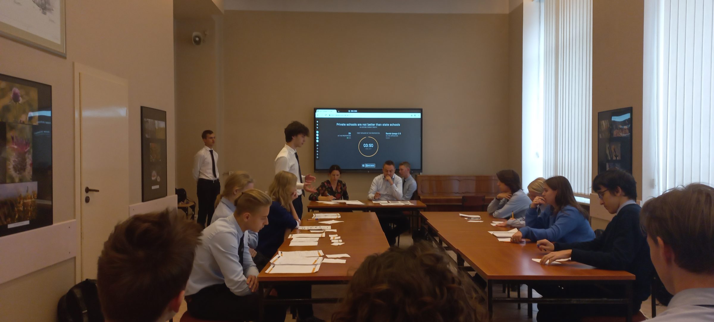 Następnie klasa 2D gr. 2/2 „proposition” wystąpiła przeciw klasie 2B gr. 2/2 „opposition” w debacie o szkołach prywatnych i państwowych. Tu zwyciężył team z klasy 2D.