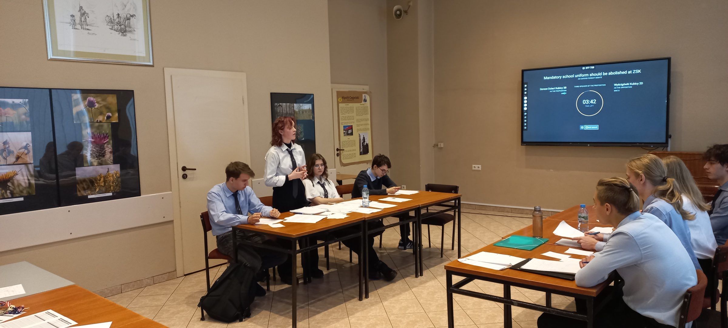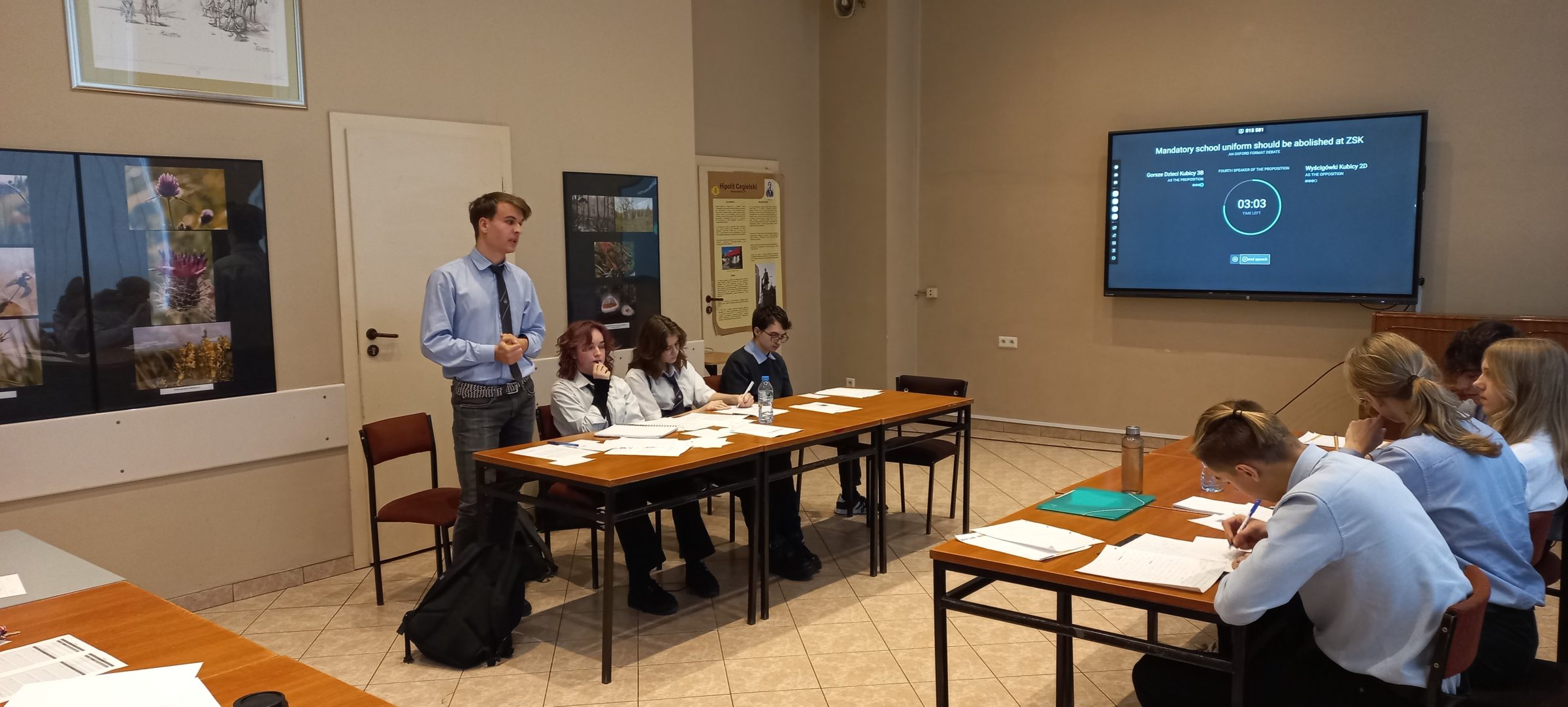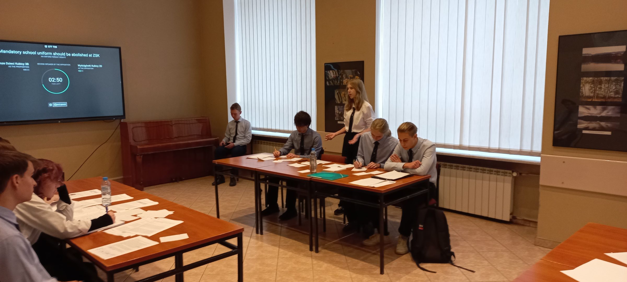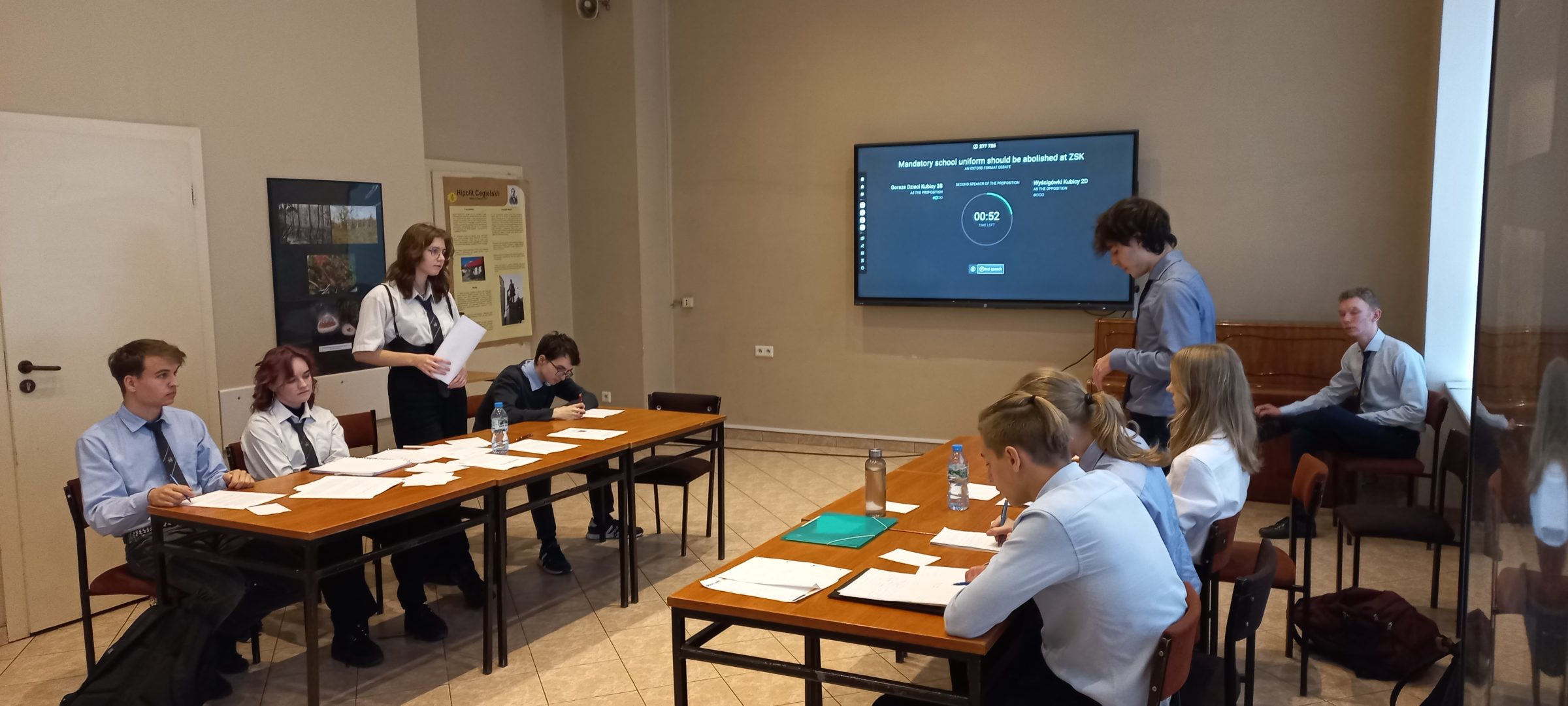 W piątek 17 listopada odbyła się kolejna debata w ramach Szkolnej Ligi Debat Oksfordzkich klas dwujęzycznych. Tego dnia konkurowały ze sobą drużyny 3B A1 jako propozycja i 2D 2/2 jako opozycja nad motion bliskim sercu i skórze każdego ucznia naszej szkoły tj. „Mandatory school uniform should be abolished at ZSK”.
