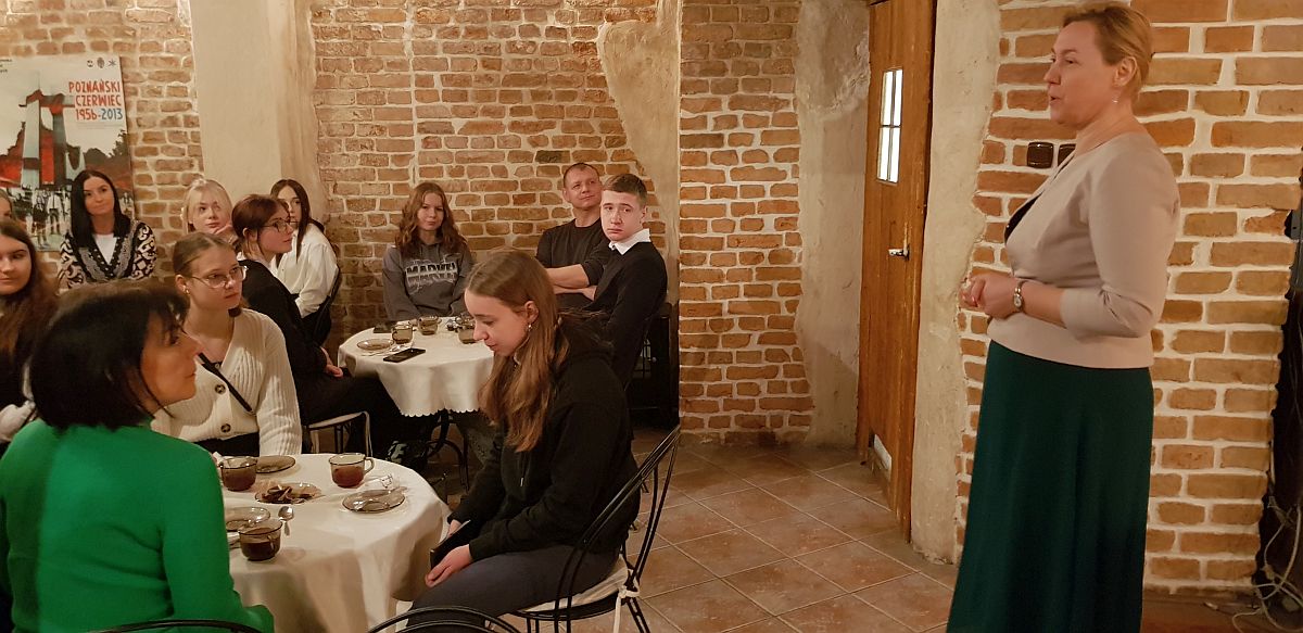 Tradycyjnie w czwartek 30 listopada 2023 roku w Piwnicy Artystycznej po raz 34 spotkali się reprezentanci Klubu Szkół Cegielskiego. Na spotkanie przybyli opiekun i uczniowie ze szkół: Szkoła Podstawowa Nr 6 z Oddziałami Integracyjnymi z Poznania, Centrum Kształcenia Ustawicznego i Zawodowego ze Środy Wlkp., Zespół Szkół z Chodzieży, Zespół Szkół Usługowo-Gospodarczych z Pleszewa, Zespół Szkół Technicznych ze Śremu i Zespół Szkół Komunikacji w Poznaniu. Gości powitała Pani dyrektor Agnieszka Brych.