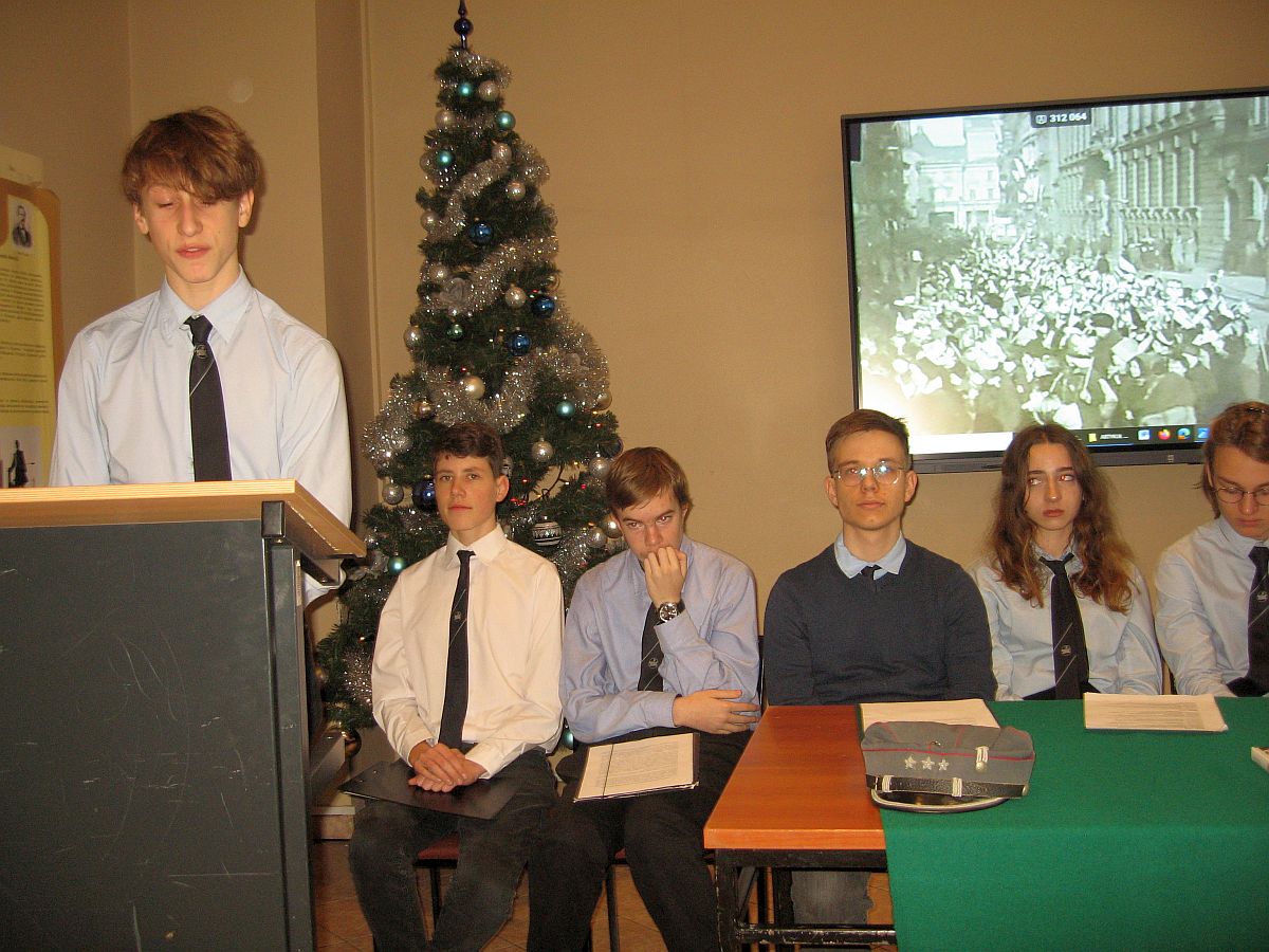 Przedstawili oni krótkie referaty na temat Powstania Wielkopolskiego. Motywem tych referatów były opracowania przygotowane przez profesora T. Schramma, Z. Pilarczyka,