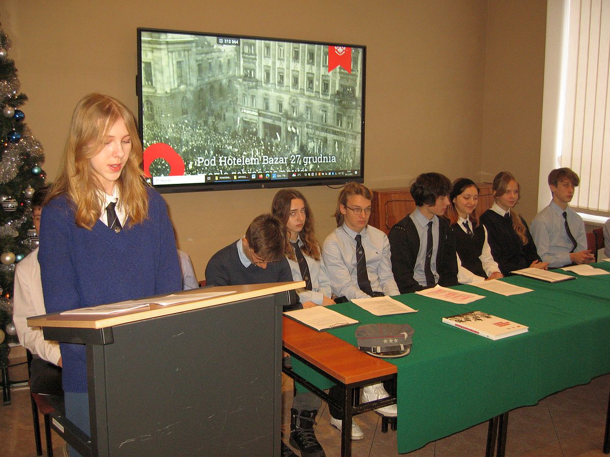 6 grudnia 2023 roku w świetlicy szkolnej odbyła się sesja popularno-naukowa poświęcona 105 rocznicy wybuchu Powstania Wielkopolskiego. W sesji udział brali Natalia Krysztofowicz, Dominik Gwiazda i Grzegorz Kałek z klasy 2A, Michał Andrzejewski i Bartosz Buszczak z klasy 2F, Franciszek Owczarzak z klasy 1E, Maja Kozłowska, Emilia Kościelniak, Hanna Łabędzka, Kajetan Antczak i Mikołaj Mazurek z klasy 2D.
