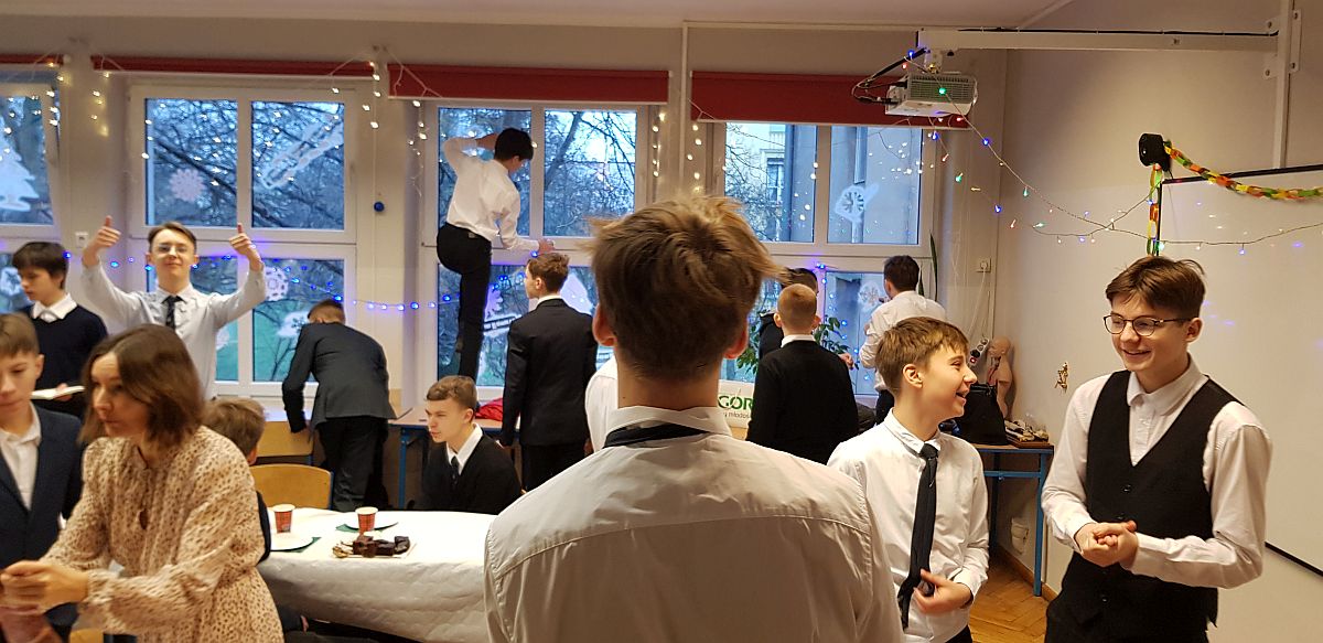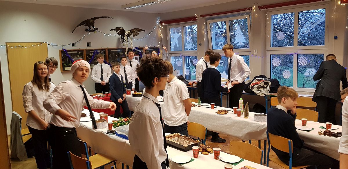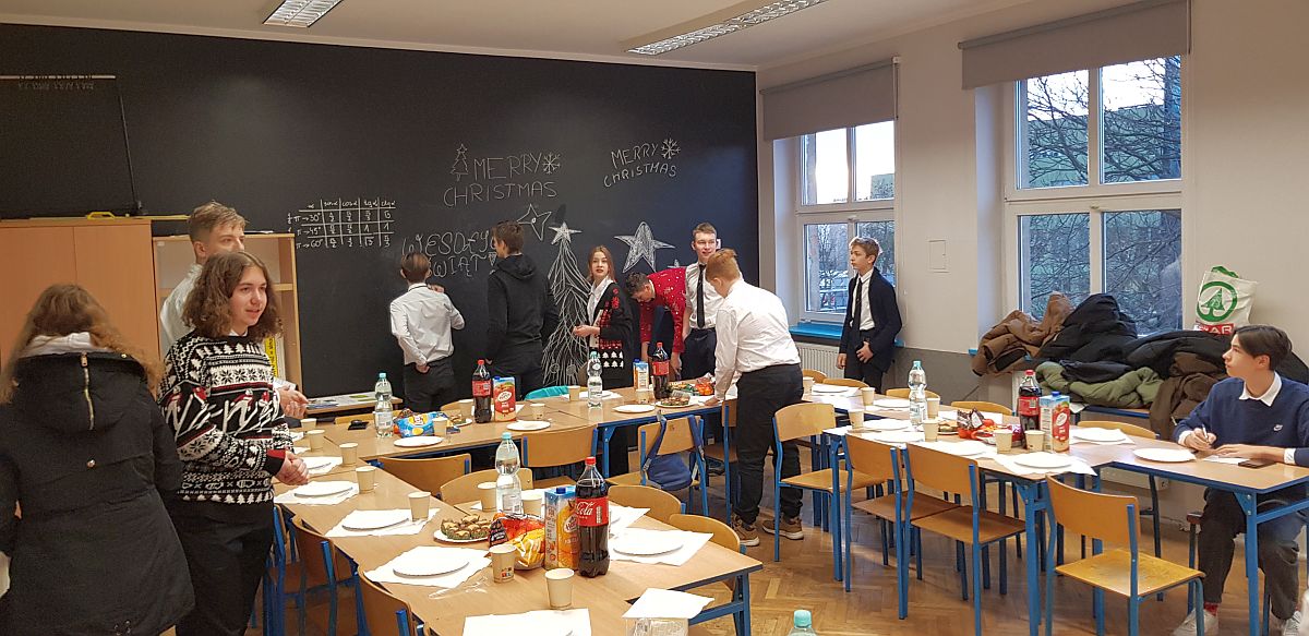 Tradycyjnie już w ostatni dzień nauki w Starym Roku, czyli 22 grudnia, odbywają się spotkania wigilijne w naszej szkole. To święto uczniów z każdej klasy, a jednocześnie inicjatywa organizacyjna. W tym roku klasy musiały się podzielić na budynek przy ul. Fredry i przy u. Bukowskiej.