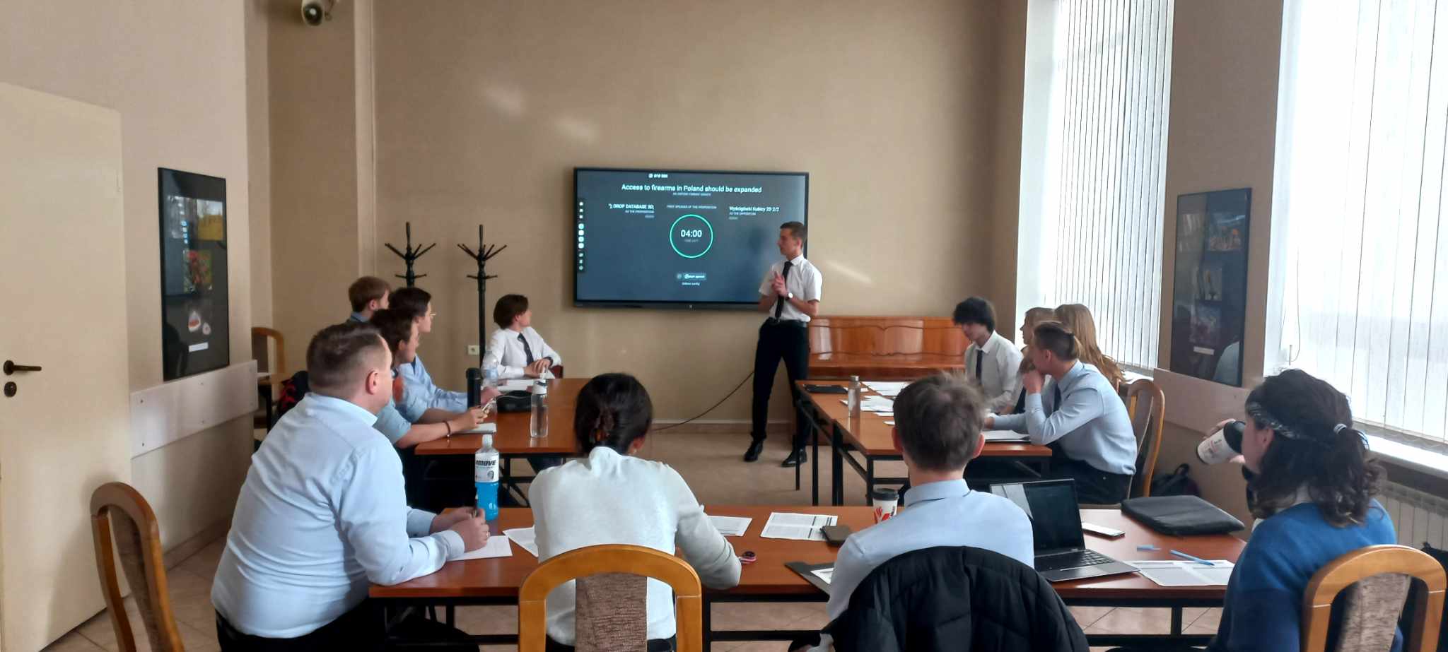 W pierwszym starciu tego dnia konkurowały ze sobą drużyny 3D 2/2 jako propozycja i 2D 2/2 jako opozycja nad motion „Access to firearms in Poland should be expanded”. W tej rywalizacji wygrała drużyna 2D 2/2.