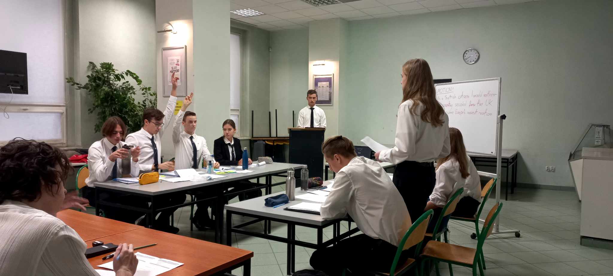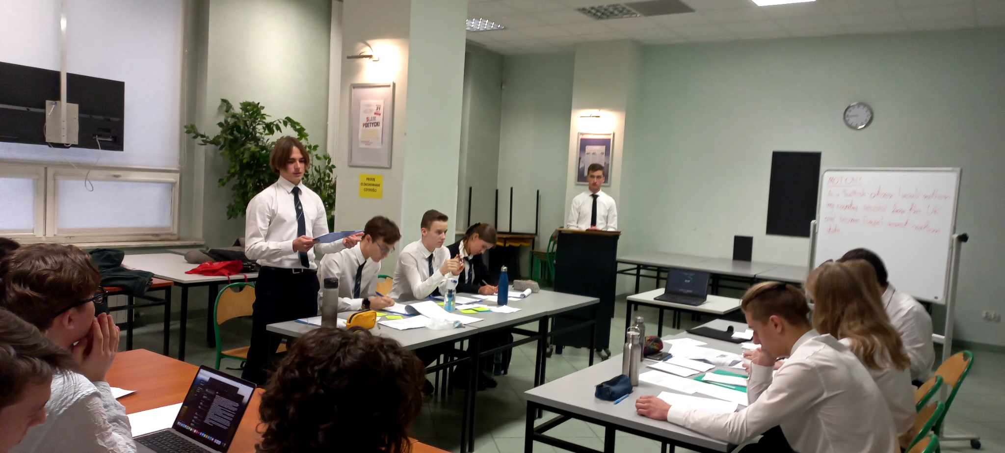 W SZKOLNEJ LIDZE DEBAT OKSFORDZKICH w języku angielskim w roku szkolnym 2023/24 wzięło udział sześć czteroosobowych drużyn z klas dwujęzycznych tj. 2B 1/2, 2B 2/2, 2D 1/2, 2D 2/2, 3B A1 oraz 3D 2/2 które wcześniej rywalizowały w fazie grupowej a następnie w półfinałach. Łącznie odbyło się dziesięć debat na ważne społecznie tematy.