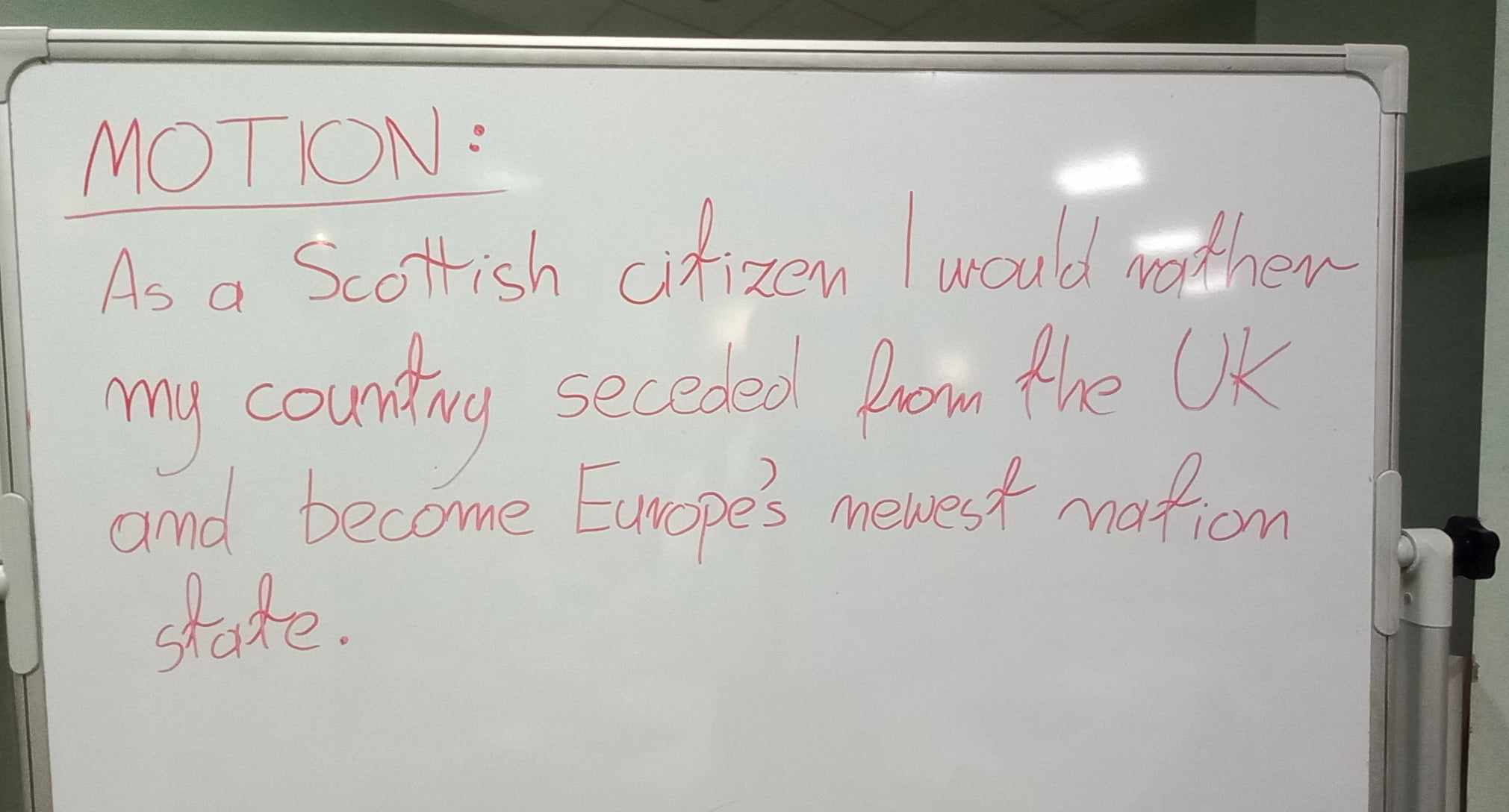 1. „As a Scottish citizen I would rather Scotland seceded from the UK and became Europe’s newest nation state” – finał 2D 1/2 (proposition) vs 2D 2/2 (opposition)