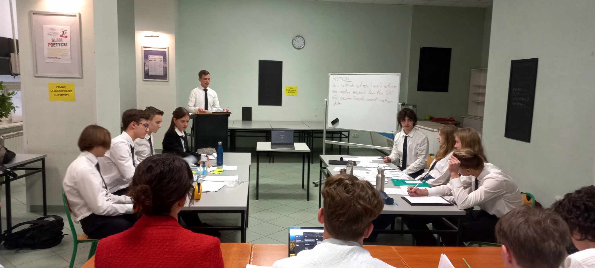 Było to jedno z głównych wydarzeń tego dnia. Uczniowie uczestniczący w zawodach mieli za zadanie przygotowanie się do argumentowania i opracowanie kontrargumentacji na poniższe tzw. „motions”