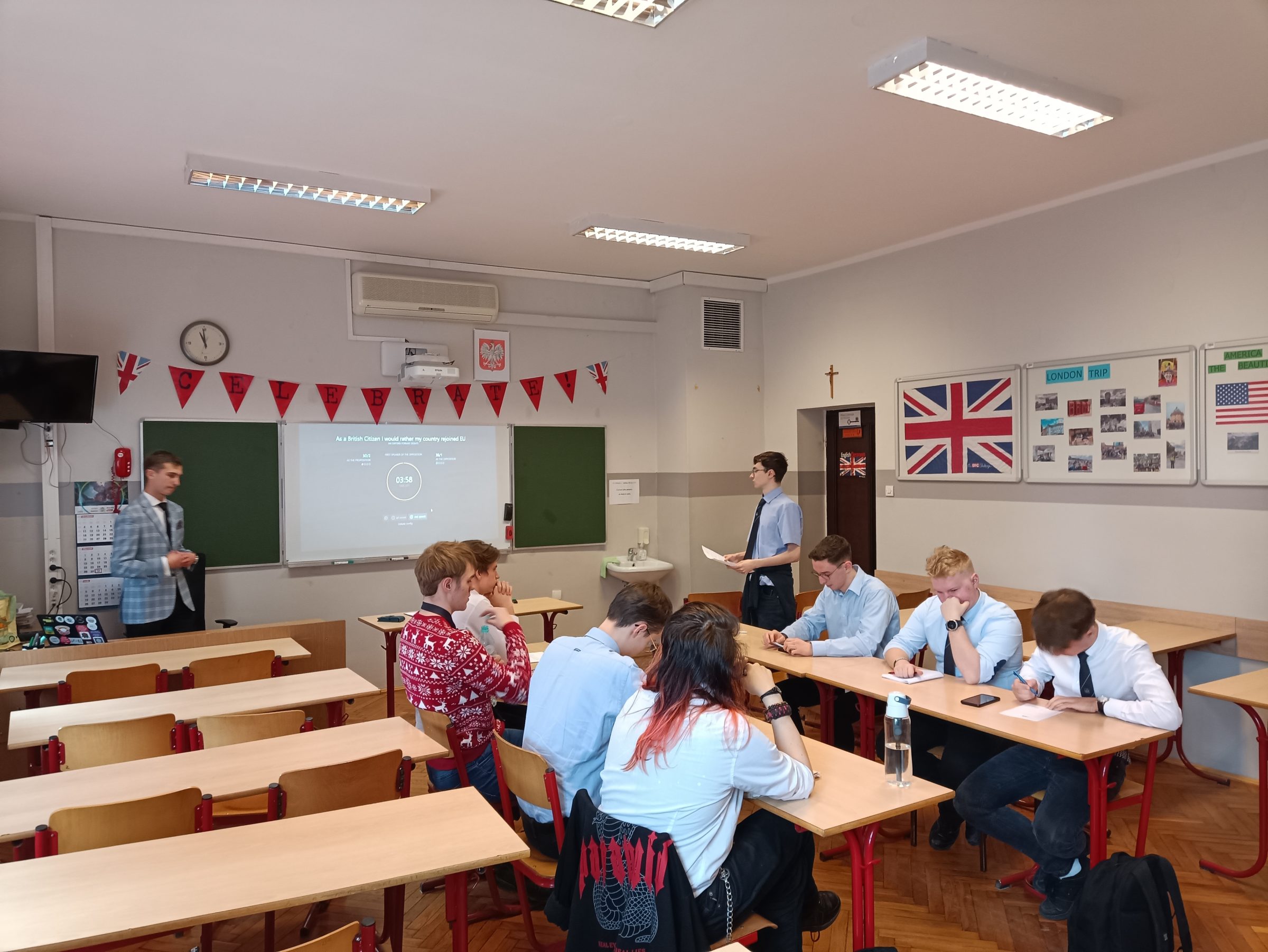2 lutego 2024 W trakcie tegorocznej edycji Dnia Językowego w ZSK pod kierownictwem p. Joanny Obstaleckiej i p. Sebastiana Kubicy i przy stałej, nieocenionej pomocy Aleksandra Skubały i Kacpra Włoszyńskiego jako sędziów oraz Mateusza Dobrzyńskiego z 5C jako marszałka ukoronowała swoją działalność SZKOLNA LIGA DEBAT OKSFORDZKICH w języku angielskim. W samym finałowym starciu na specjalne zaproszenie pojawił się p. Dominik Bąk z Fundacji Projekty Edukacyjne, który jest sędzią w debatach oksfordzkich z doświadczeniem na arenie międzynarodowej.