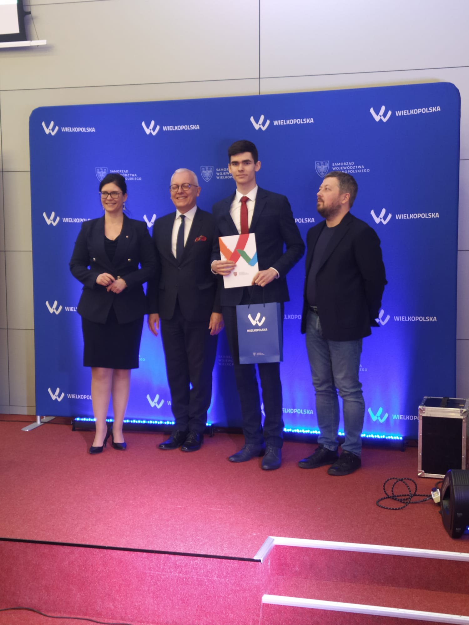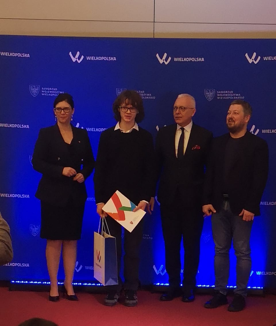 Nagrody wręczyli: Pani Marszałek Paulina Stochniałek , Pan Dariusz Grzybek – Prezes Zarządu Fundacji Zakłady Kórnickie, współorganizator konkursu Pan dr Paweł Mleczko z Wydziału Matematyki i Informatyki UAM.