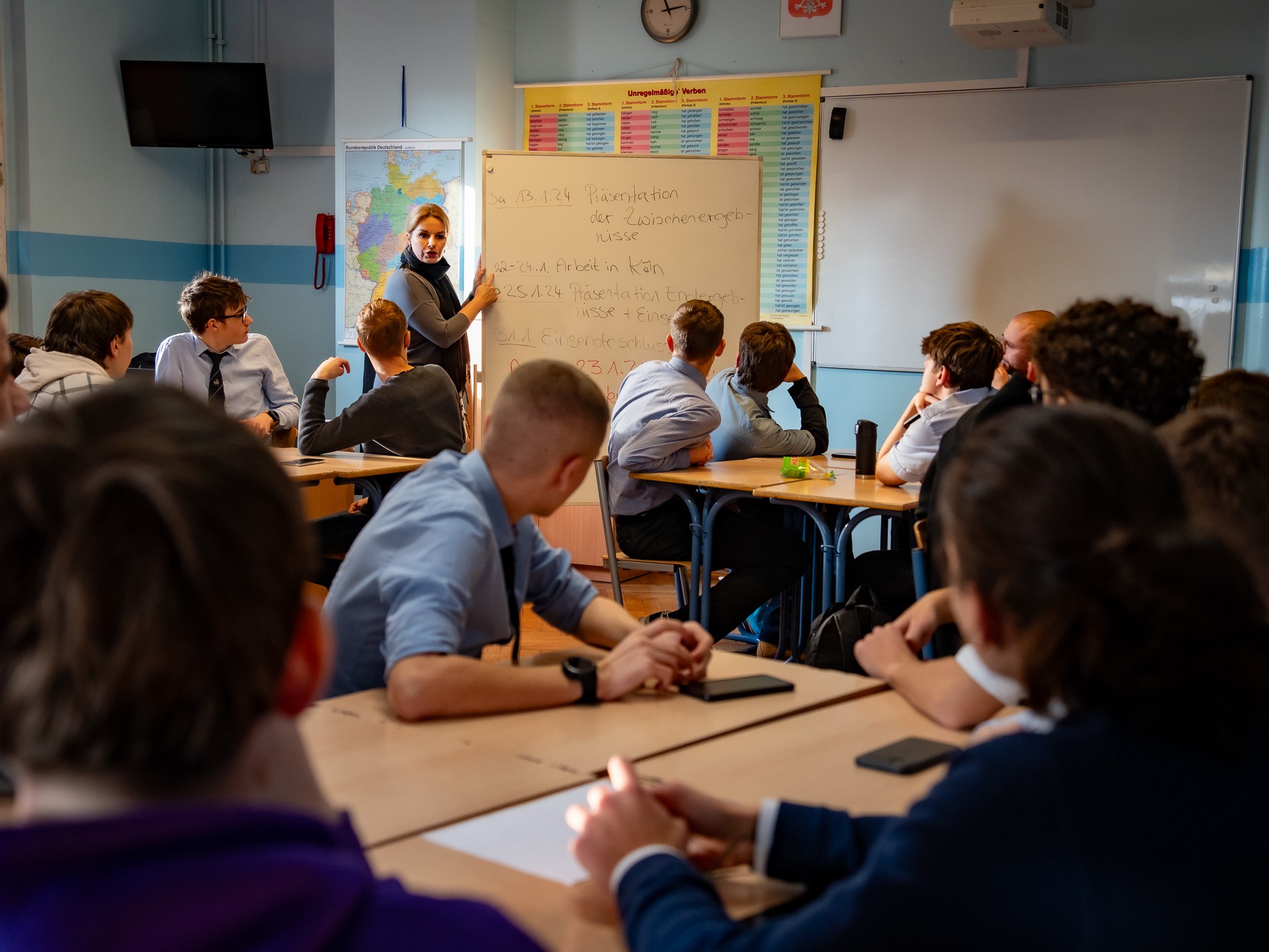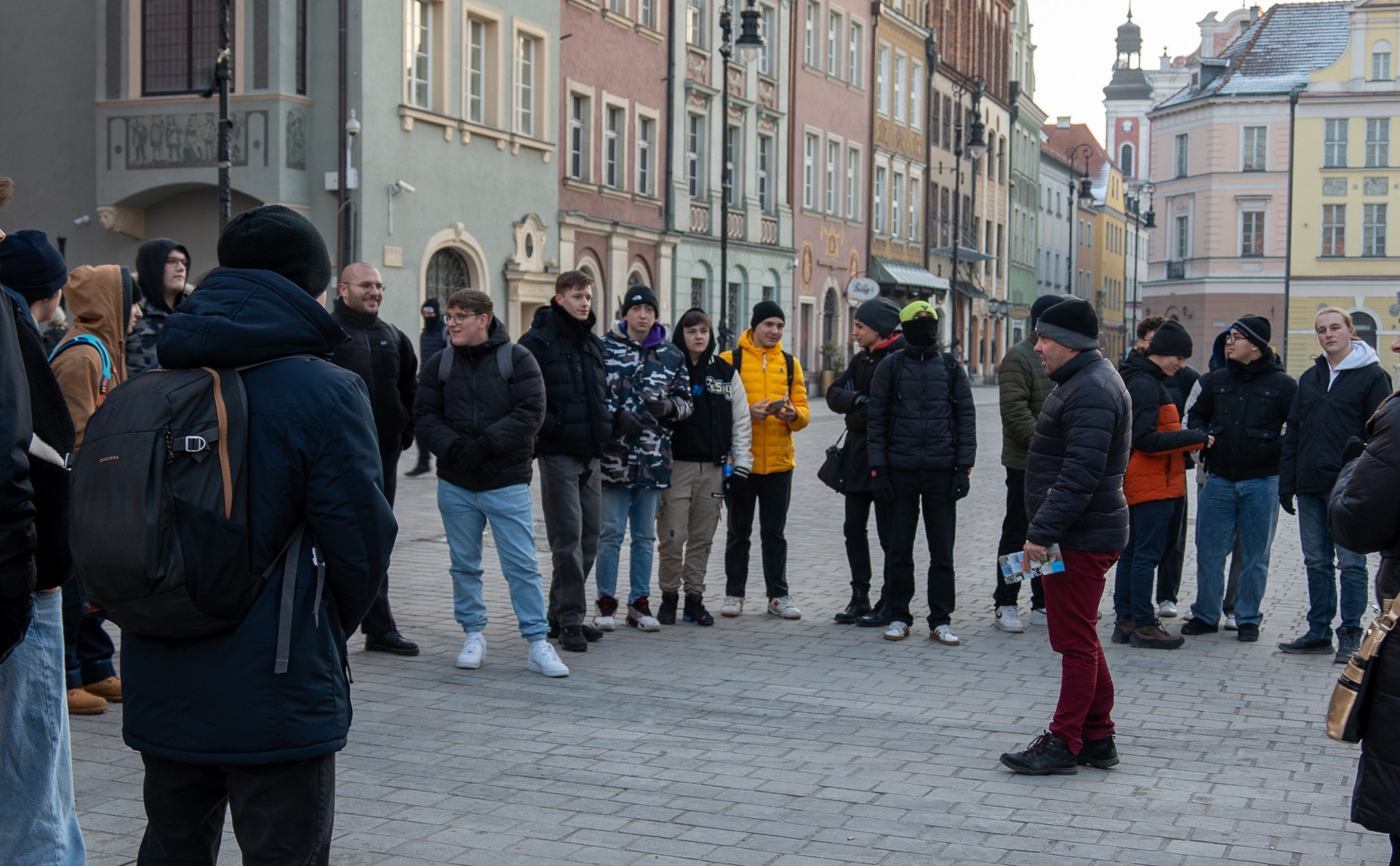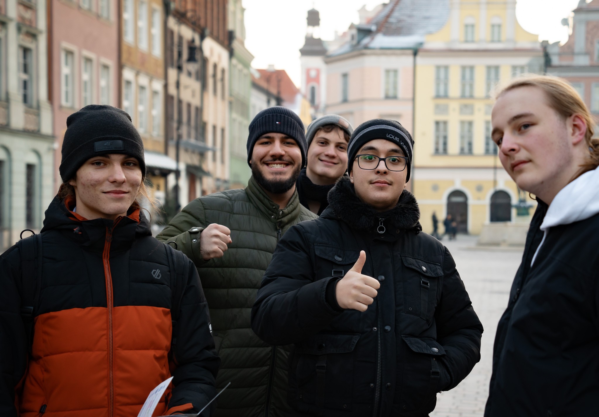 W dniach od 9 do 14 stycznia 2024 gościliśmy w gmachu naszej szkoły czternastu uczniów z niemieckiej placówki oświatowej GSO (Georg-Simon-Ohm Berufskolleg), którzy wspólnie z młodzieżą z Zespołu Szkół Komunikacji im. Hipolita Cegielskiego pracowali nad projektami w ramach wymiany międzynarodowej „Wspólne pokonywanie granic”. W międzyczasie nasi goście mieli okazję odkryć Poznań biorąc udział w grze miejskiej, odwiedzić trzy muzea i poznać historię związaną z początkami państwa polskiego, drugą wojną światową oraz spróbować lokalnego poznańskiego przysmaku, jakim jest rogal świętomarciński.