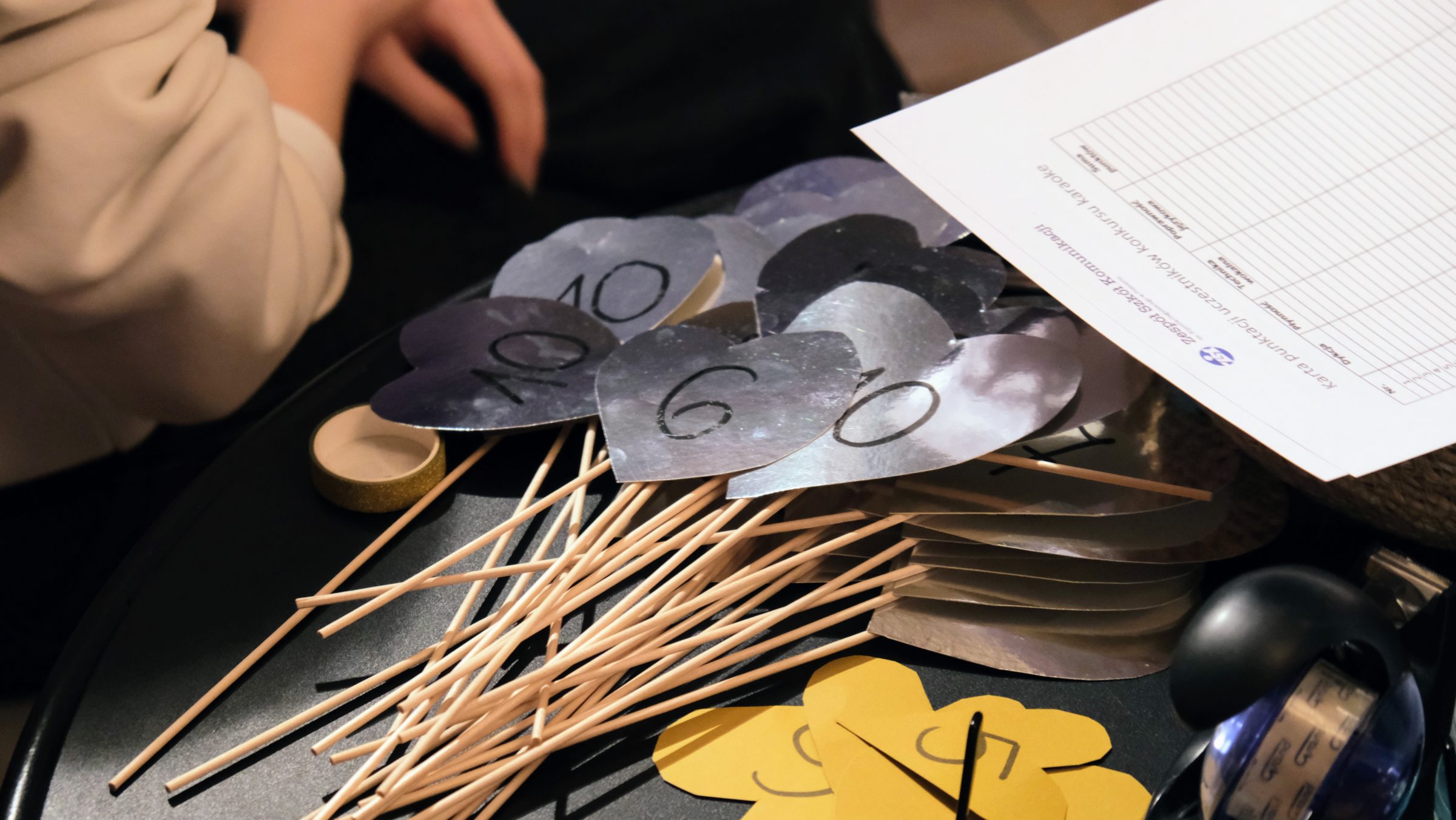 karaoke, który przyciągnął do Piwnicy Artystycznej ZSK fanów muzyki, śpiewu a nawet tańca. Młodzież najchętniej wybierała utwory zespołu Queen, utwór zespołu Rammstein ” Du hast” oraz utwór Rick’a Astley’a ” Never gonna give you up”. Karta punktacji w konkursie zawierała następujące kryteria oceny uczestników: dykcja, technika wokalna, poprawność językowa, płynność.