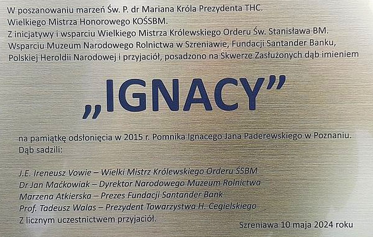 w Szreniawie 11 uczniów wraz z opiekunem uczestniczyło w uroczystości posadzenia dębu „Ignacy”, poświęconego Ignacemu Paderewskiemu. Była to już kolejna uroczystość, podczas której posadzono trzeci dąb. Pierwszy nosi imię Hipolit i był posadzony z okazji 20-lecia THC, drugi Marian i został posadzony z okazji XXV5-lecia Towarzystwa im. H. Cegielskiego.