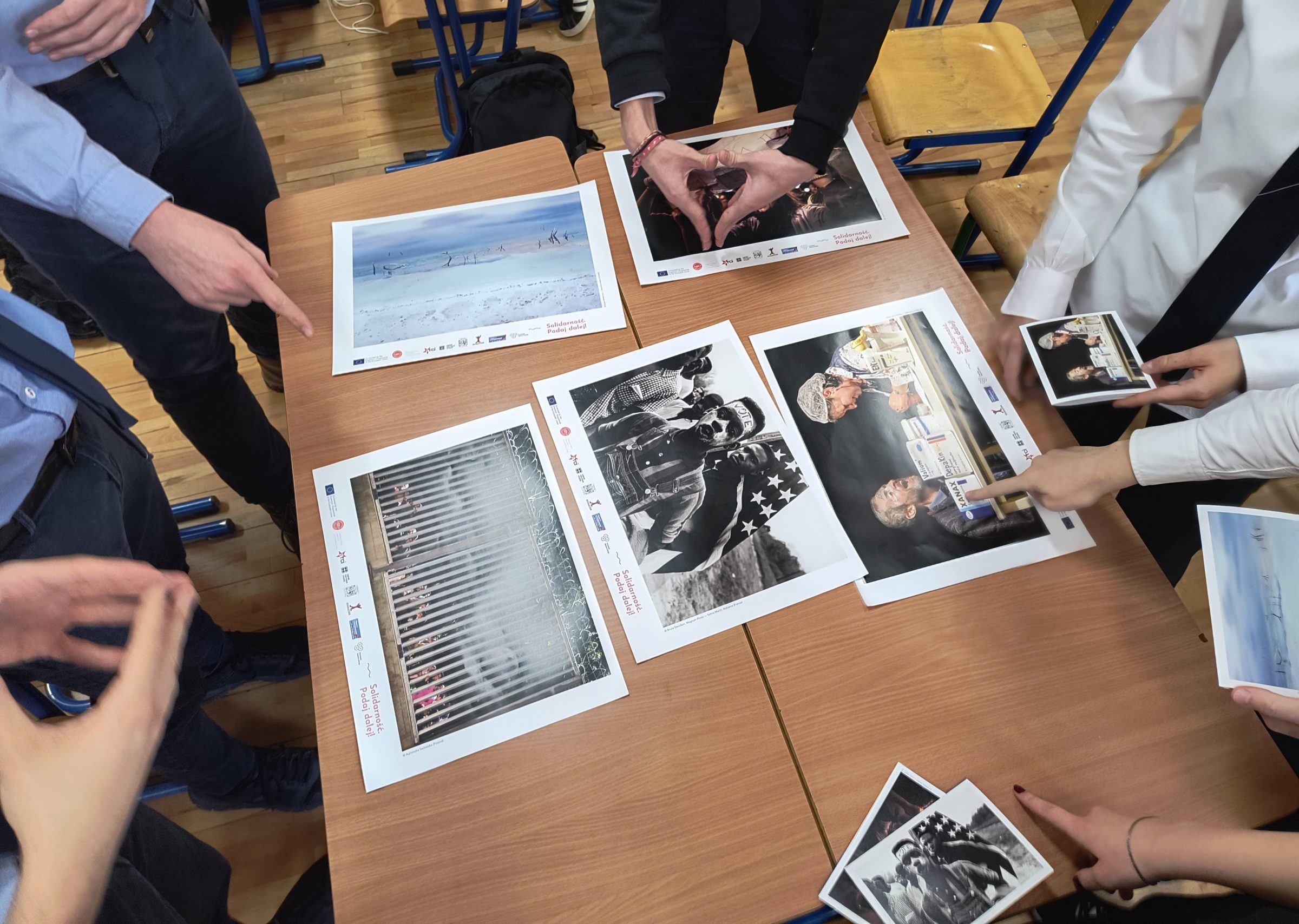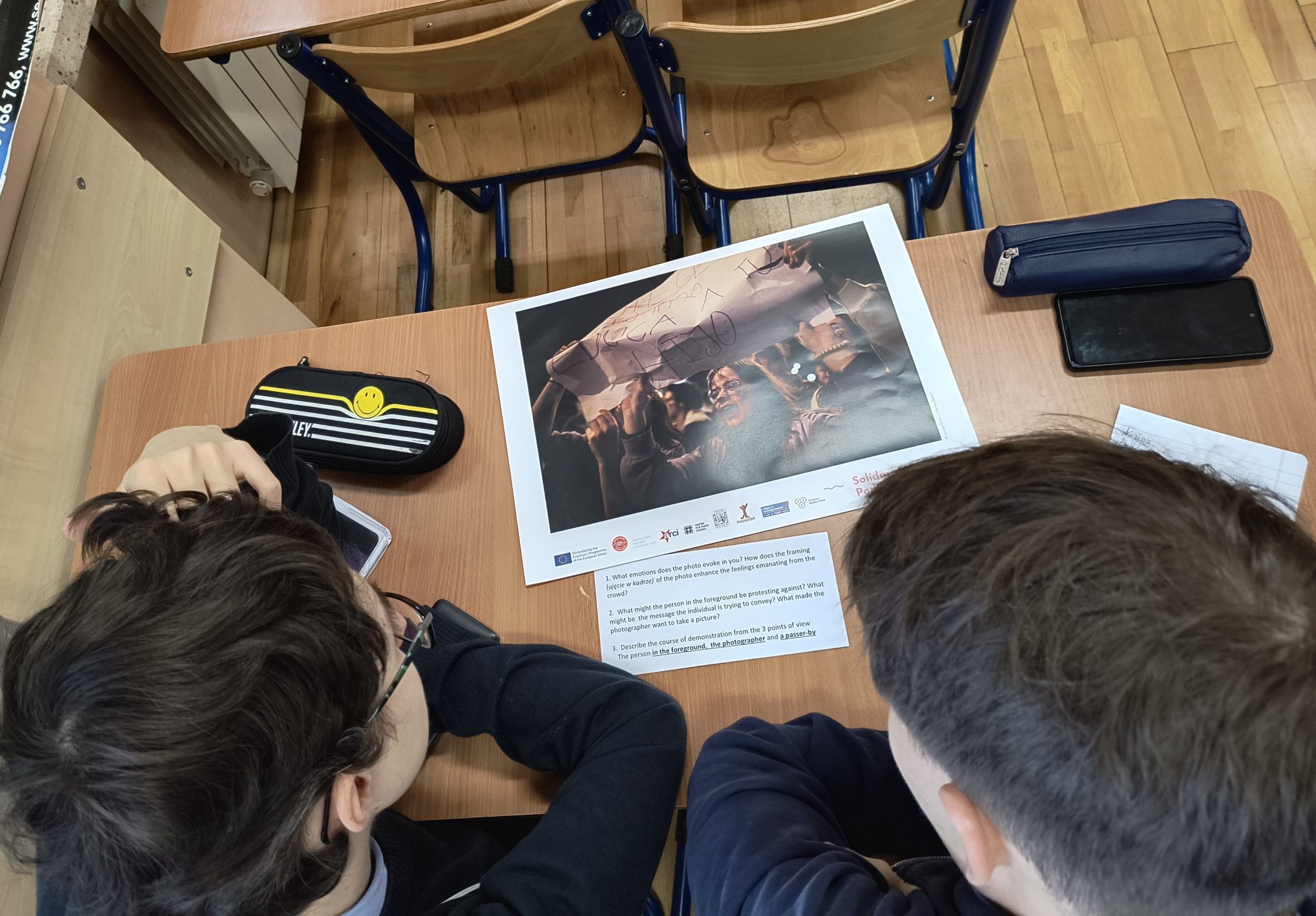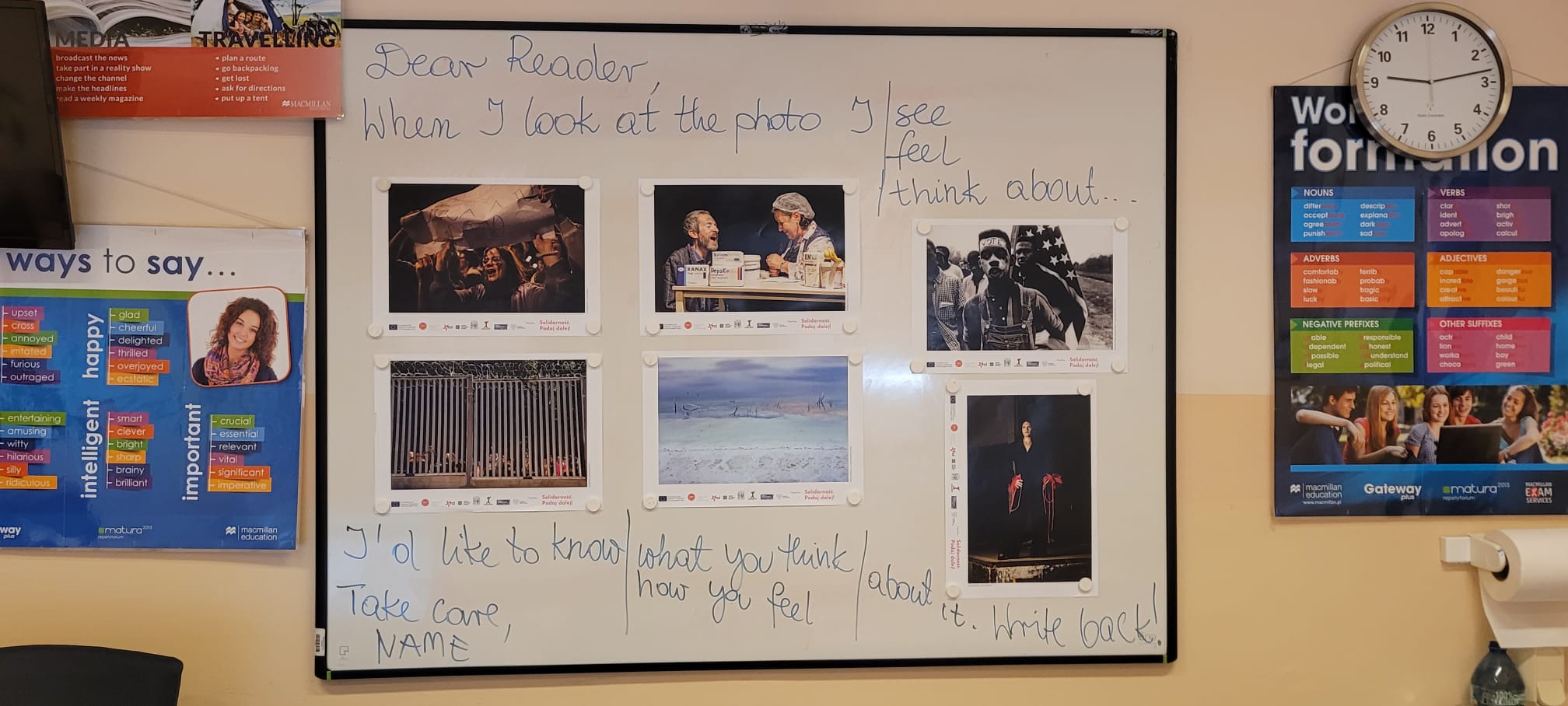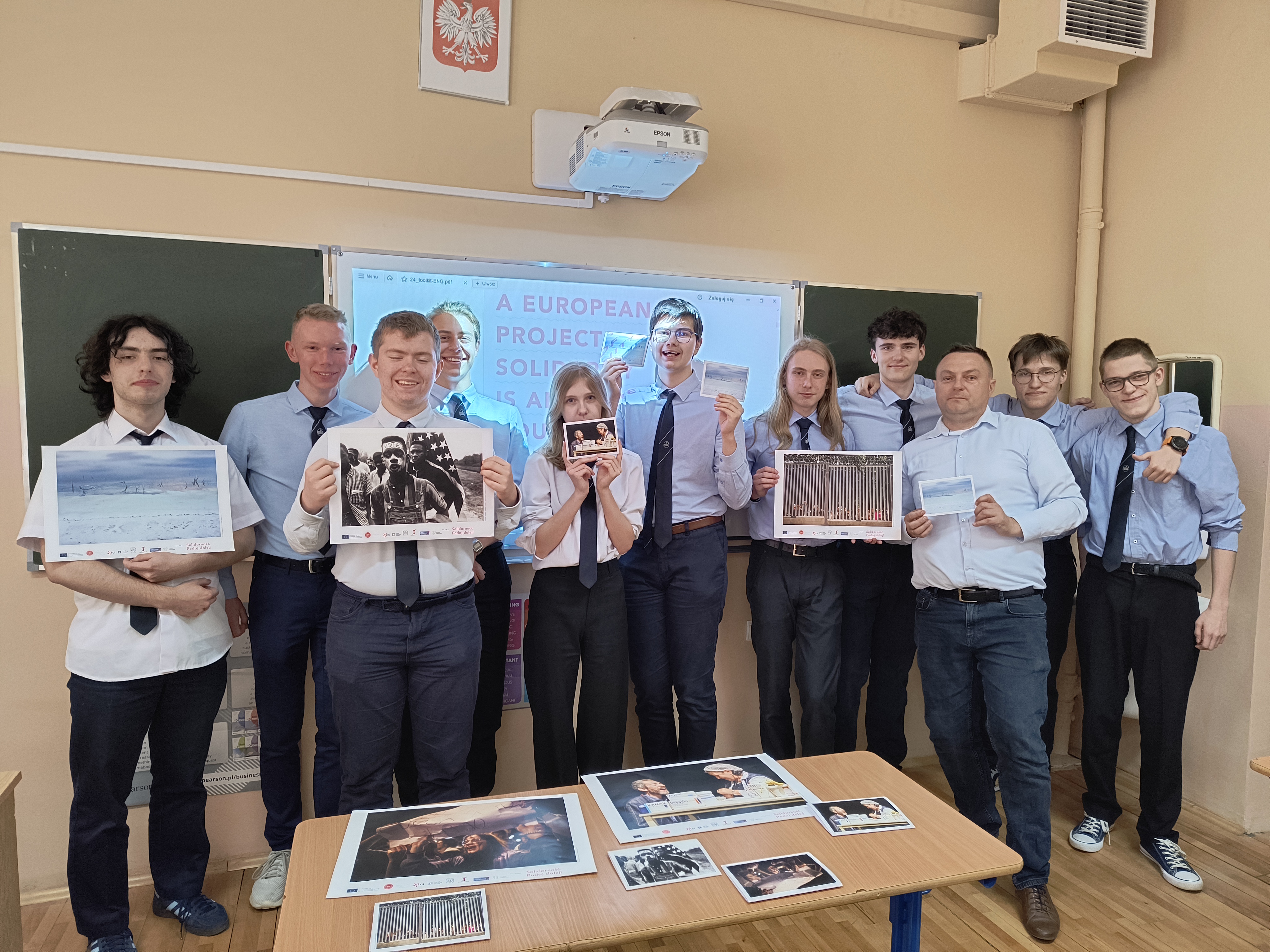 W kwietniu i maju bieżącego roku szkolnego grupy klas dwujęzycznych 1C, 1E, 2B, 2D oraz 3B pod opieką swoich nauczycielek i nauczyciela języka angielskiego p. Sandry Lasoty, p. Joanny Obstaleckiej, p Emilii Szutowskiej-Pietranis i p. Sebastiana Kubicy uczestniczyły w tegorocznej edycji programu „Solidarność. Podaj dalej!” prowadzonego w Polsce przez Fundację Szkoła z Klasą i realizowanego międzynarodowo poza Polską w partnerstwie z Francją, Chorwacją, Hiszpanią, Włochami i Słowenią. Uczennice i uczniowie ww. klas na swoich lekcjach języka angielskiego analizowali i interpretowali współczesne fotografie oraz dyskutowali na ważne tematy społeczne takie jak: dyskryminacja, równość płci, kryzys zdrowia psychicznego, wojny i globalne konflikty, kryzys migracyjny, zmiany klimatyczne oraz walka z rasizmem wyrażając co czują i myślą i co chcieliby zmienić w otaczającym ich świecie.