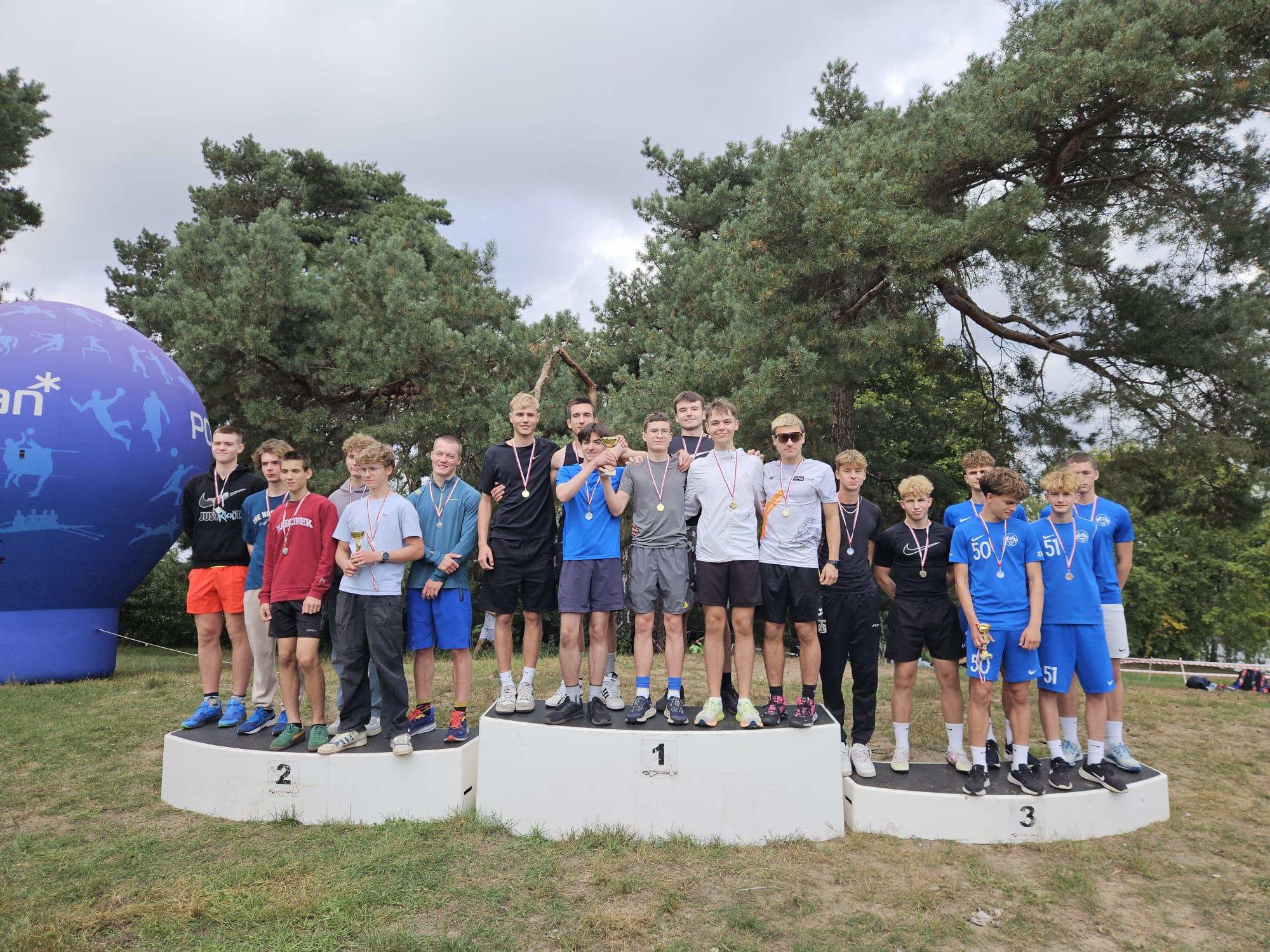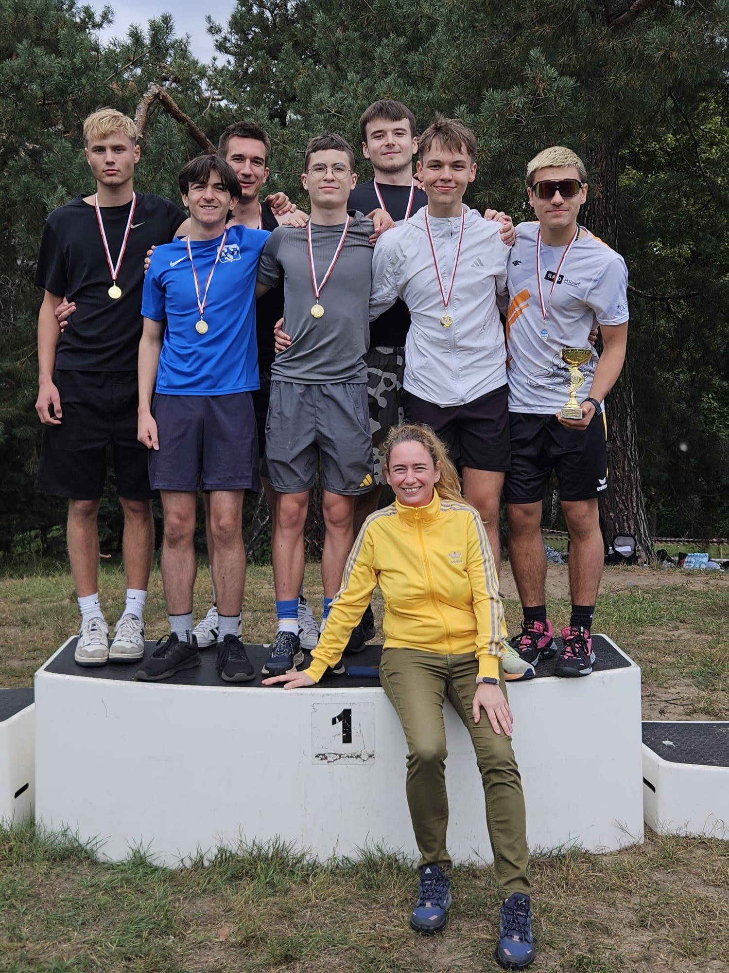 Franciszek Solarek, Piotr Kopek, Filip Nowacki, Maksymilian Marczak, Jan Sammler, Krzysztof Borowiak i Filip Buszewicz wywalczyli 1. miejsce w sztafetowych biegach przełajowych, które odbyły się 25.09.2024 na Polanie Harcerza w Poznaniu.