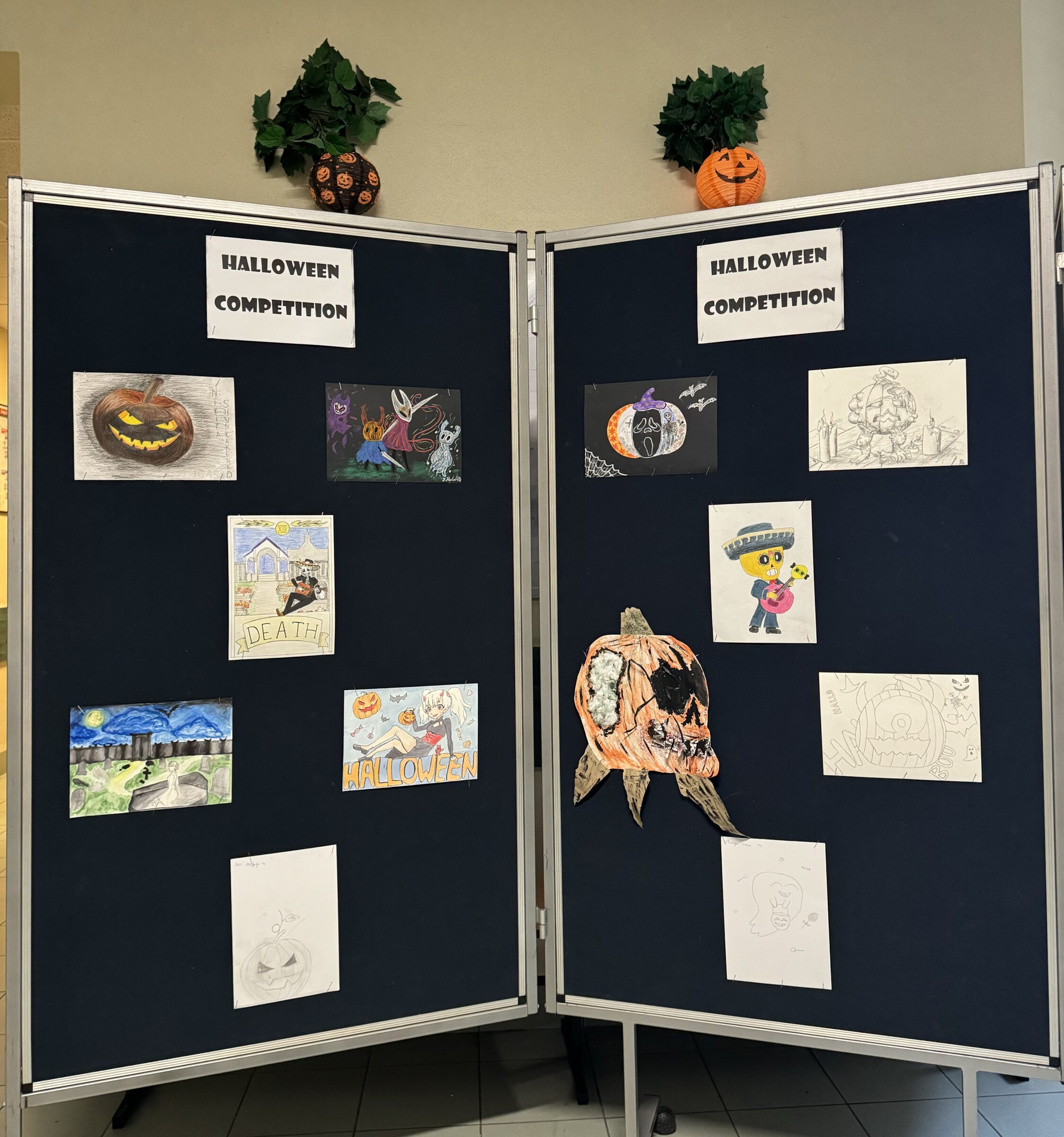 W ramach obchodów Halloween zorganizowane zostały różnorodne konkursy. Uczniowie wzięli udział w konkursie plastycznym, w którym rysowali lub malowali dynie oraz motywy związane z Halloween. Kolejnym punktem programu był konkurs na najbardziej atrakcyjne przebranie, który cieszył się ogromnym zainteresowaniem. Zorganizowano również konkurs wiedzy o Halloween i tradycjach związanych ze Świętem Zmarłych w Meksyku.