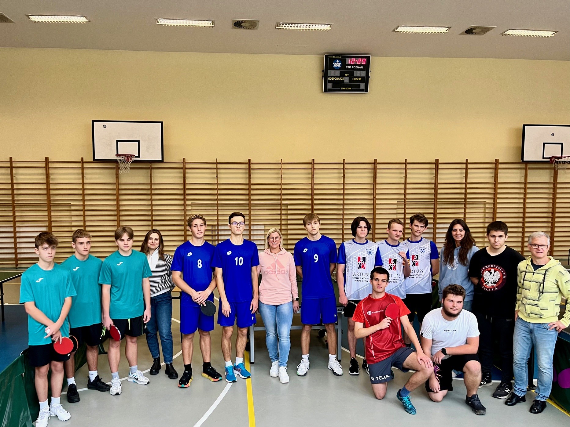 W środę 30 października 2024 r. o godz. 12.00, na sali gimnastycznej Zespołu Szkół Komunikacji w Poznaniu spotkały się i rozegrały mecze zespoły grupy B w Drużynowym Tenisie Stołowym Chłopców, w składzie: