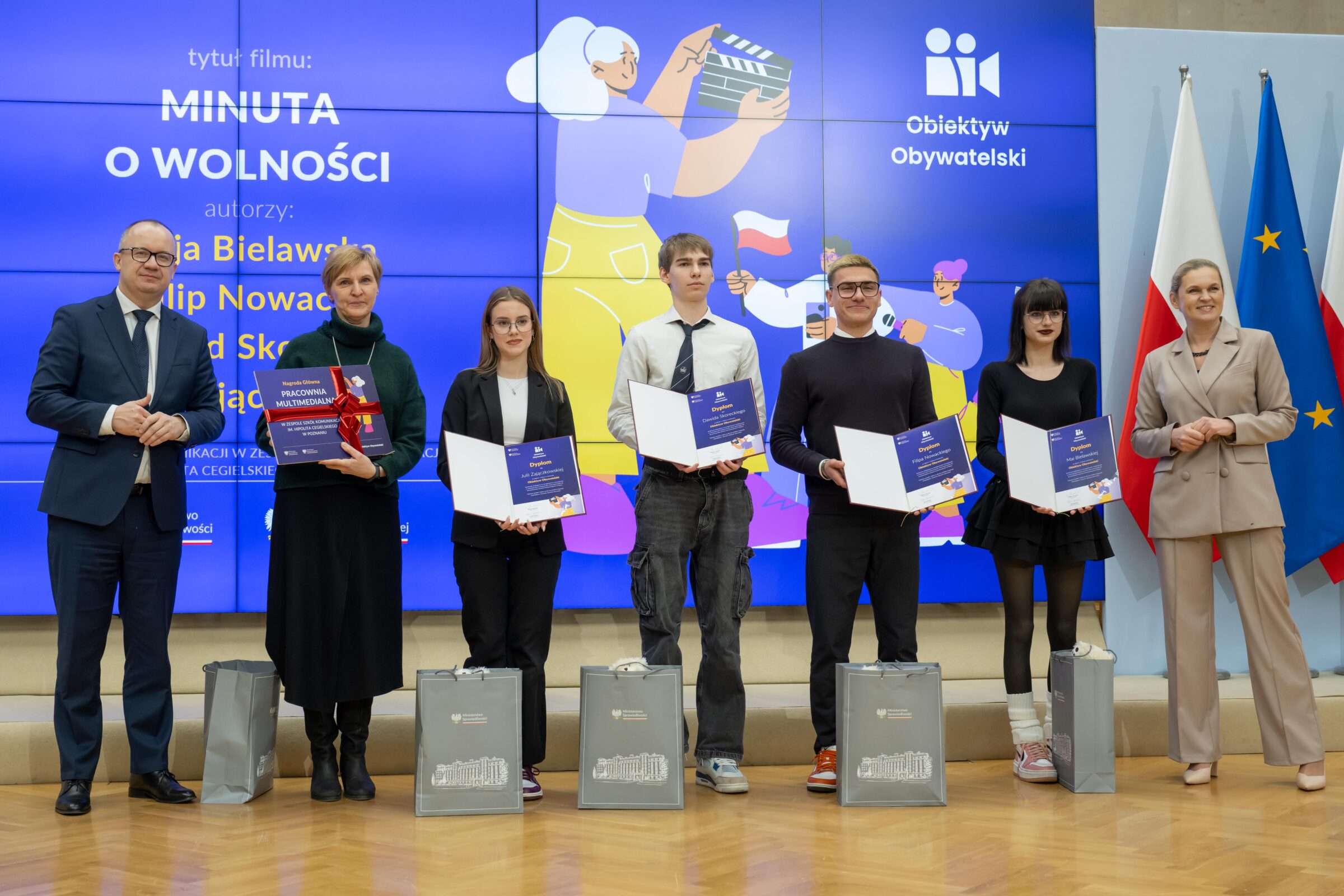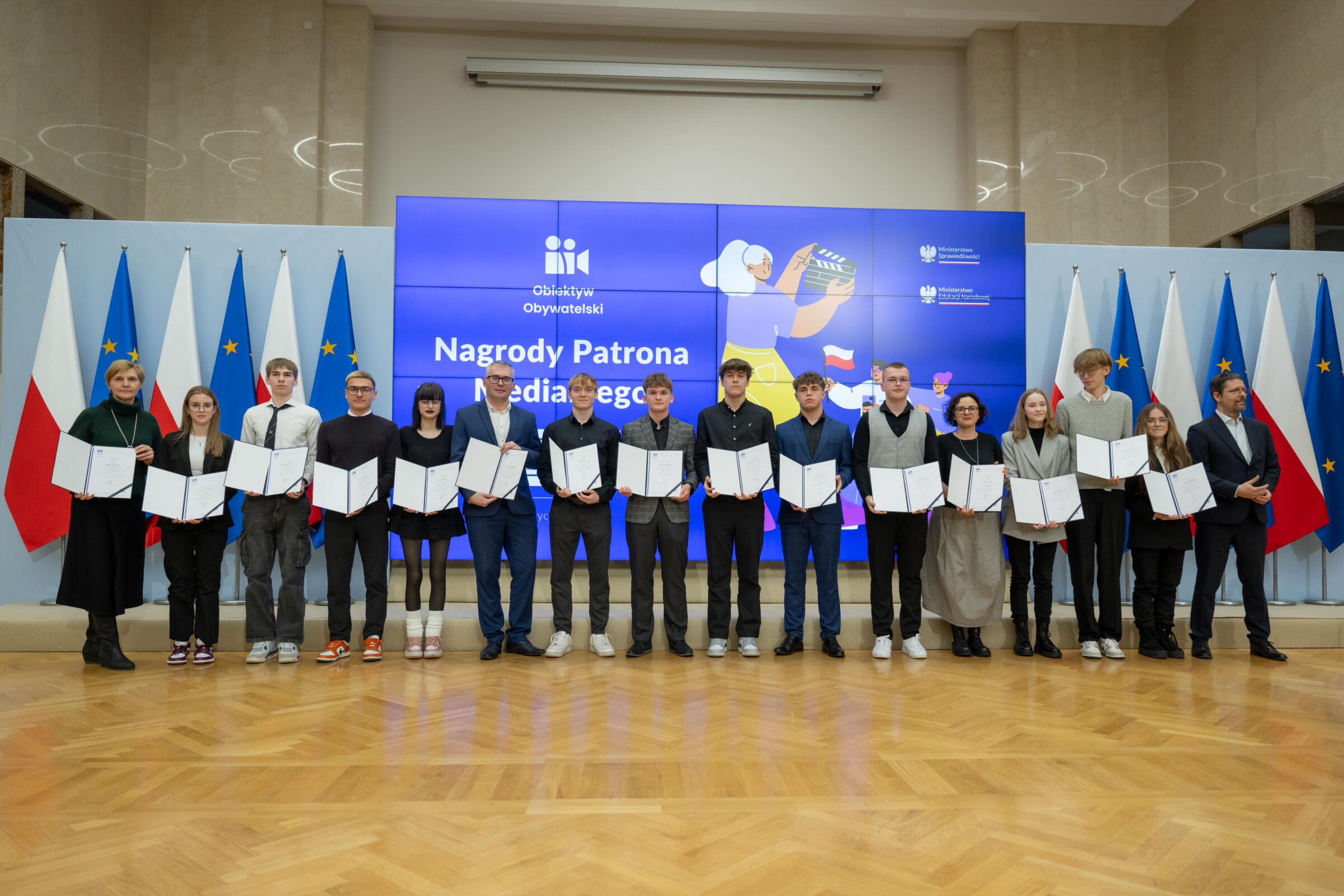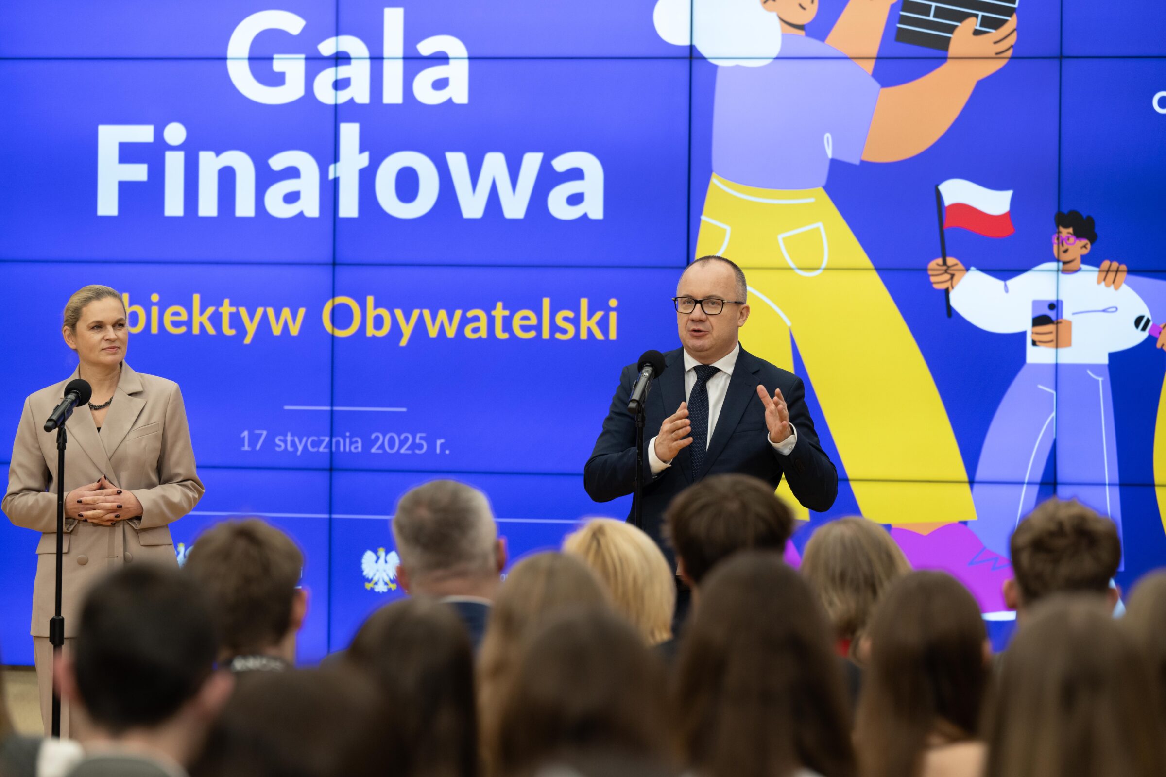 17 stycznia 2025r. w Kancelarii Prezesa Rady Ministrów w Warszawie odbyła się gala finałowa konkursu „Obiektyw obywatelski” z udziałem Pani Minister Edukacji Narodowej Barbary Nowackiej i Pana Ministra Sprawiedliwości Adama Bodnara. Po uroczystości odbyły się warsztaty dla młodzieży i nauczycieli poświęcone sposobom upowszechniania treści i wartości konstytucyjnych wśród młodzieży.