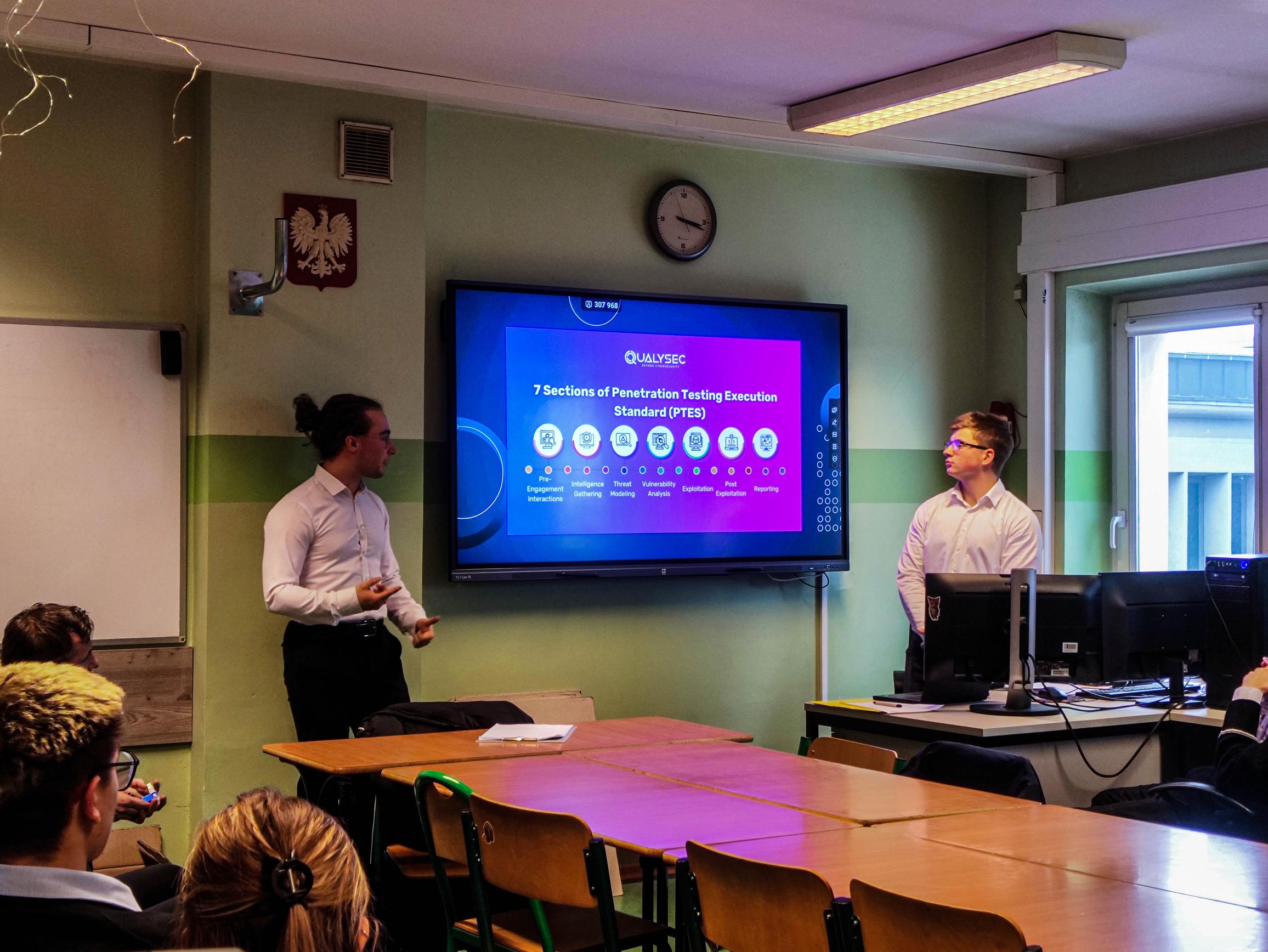 Teoretyczną – uczestnicy dowiedzieli się o różnych rolach w cybersecurity, zasadach sporządzania umów przed testami penetracyjnymi oraz tworzeniu raportów. Omówione zostały także popularne podatności webowe i narzędzia wykorzystywane przy pentestach.