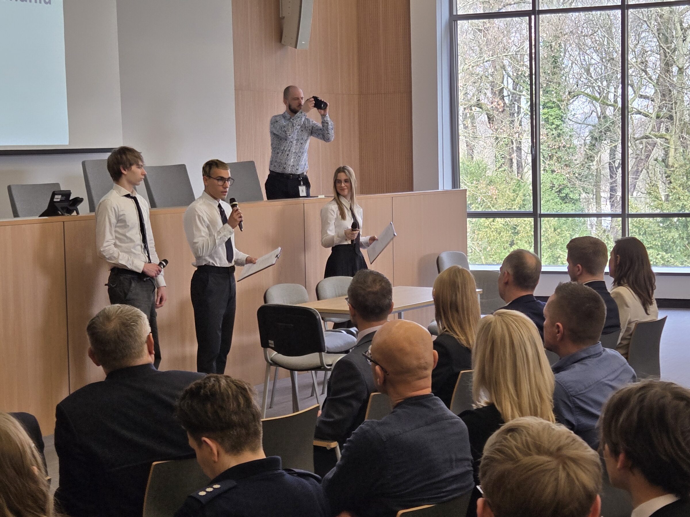 14 marca 2025r. uczniowie naszej szkoły, pod opieką p. Kamili Kościelniak i p. Marka Nowaka wzięli udział w Dniu Edukacji Prawnej. Jest to cykliczne wydarzenie organizowane w Sądzie Okręgowym w Poznaniu dla młodzieży szkół ponadpodstawowych. Laureaci konkursu „Obiektyw obywatelski”: Julia Zajączkowska, Maja Bielawska, Filip Nowacki i Dawid Skorecki zostali zaproszeni jako szczególni goście. Na początku spotkania zaprezentowano ich zwycięski film „Minuta o wolności” a następnie poprowadzili oni dyskusję z młodzieżą na temat wartości konstytucyjnych, wolności i samej konstytucji.