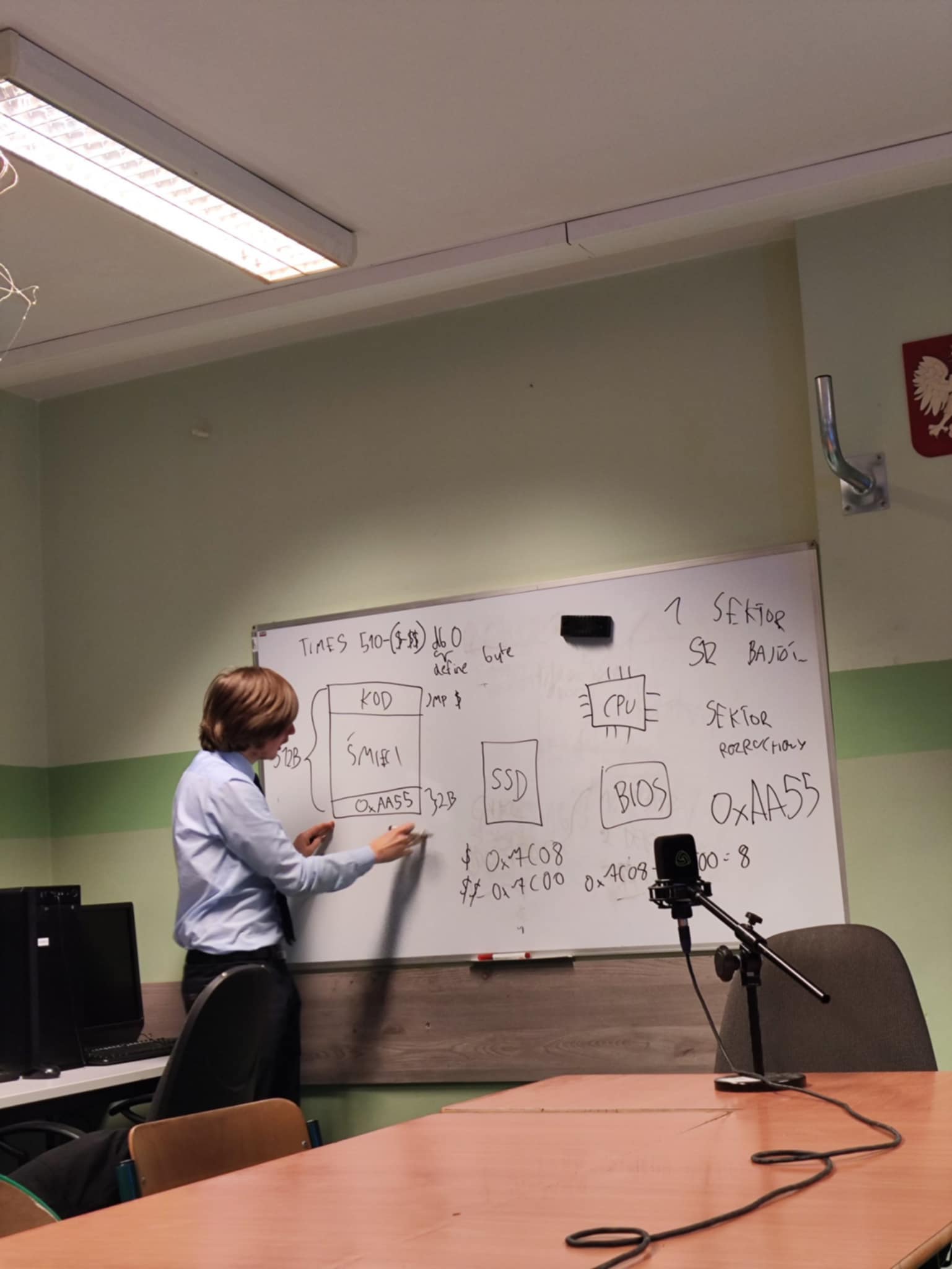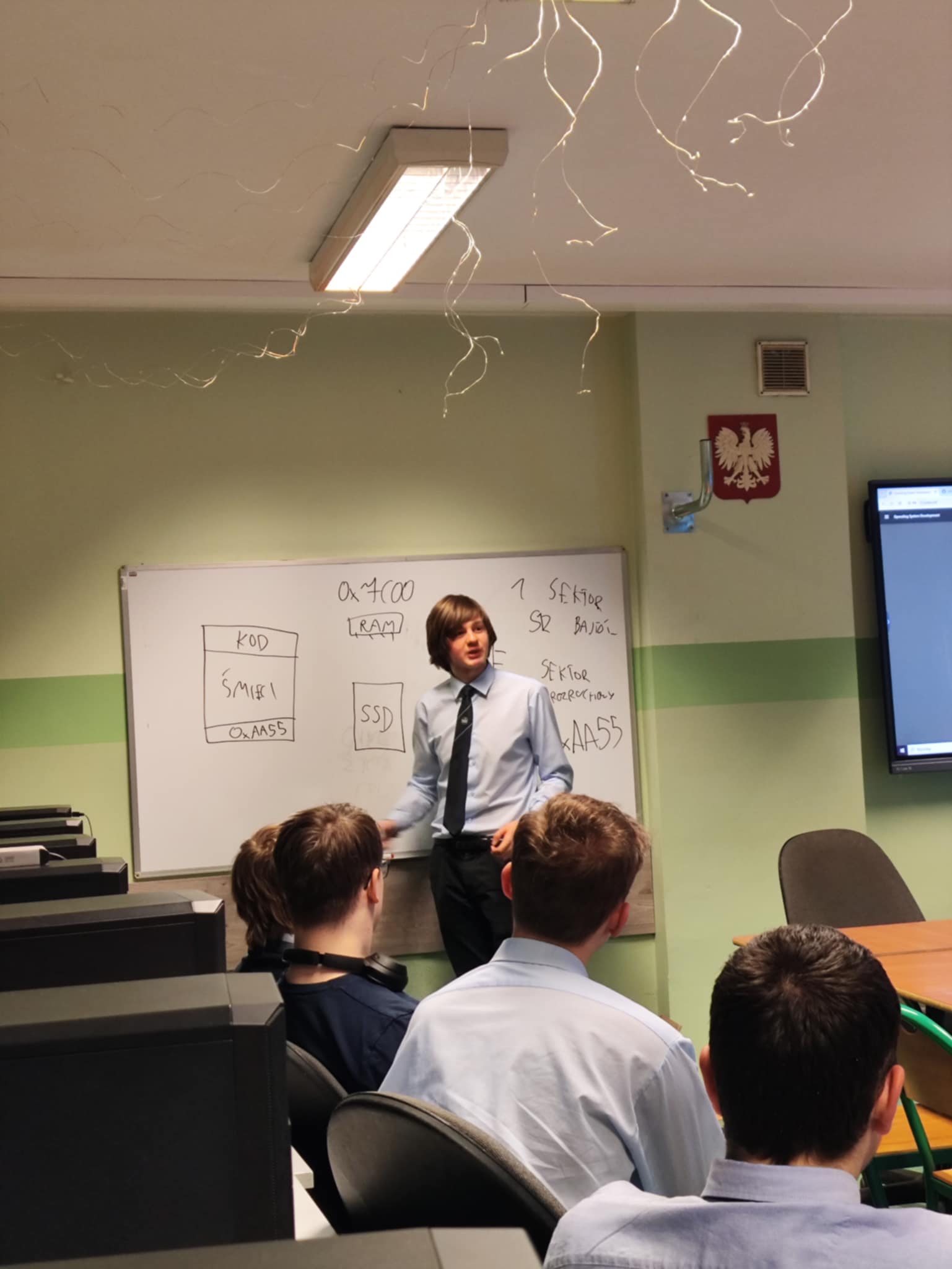 18. marca w naszej szkole odbyły się warsztaty pod tytułem „Programowanie Systemów Operacyjnych” prowadzone przez Dominika Śliwińskiego (autora systemu operacyjnego RaidouOS) pod nadzorem inż. Klaudii Wojciechowskiej. Na zajęcia przyszło prawie dwudziestu różnych uczniów gotowych pogłębić swoją wiedzę na ten ekscytujący temat. Uczestnicy mieli okazję zarówno poznać teorię systemów operacyjnych poprzez prezentację z najważniejszymi zasobami procesów i sposobami zarządzania nimi przez system operacyjny, jak i ćwiczenia praktyczne.