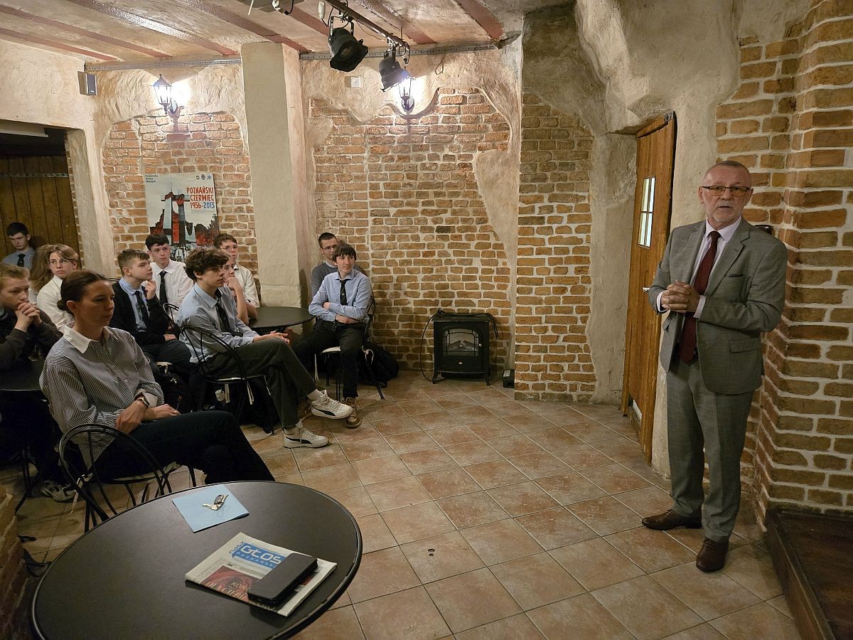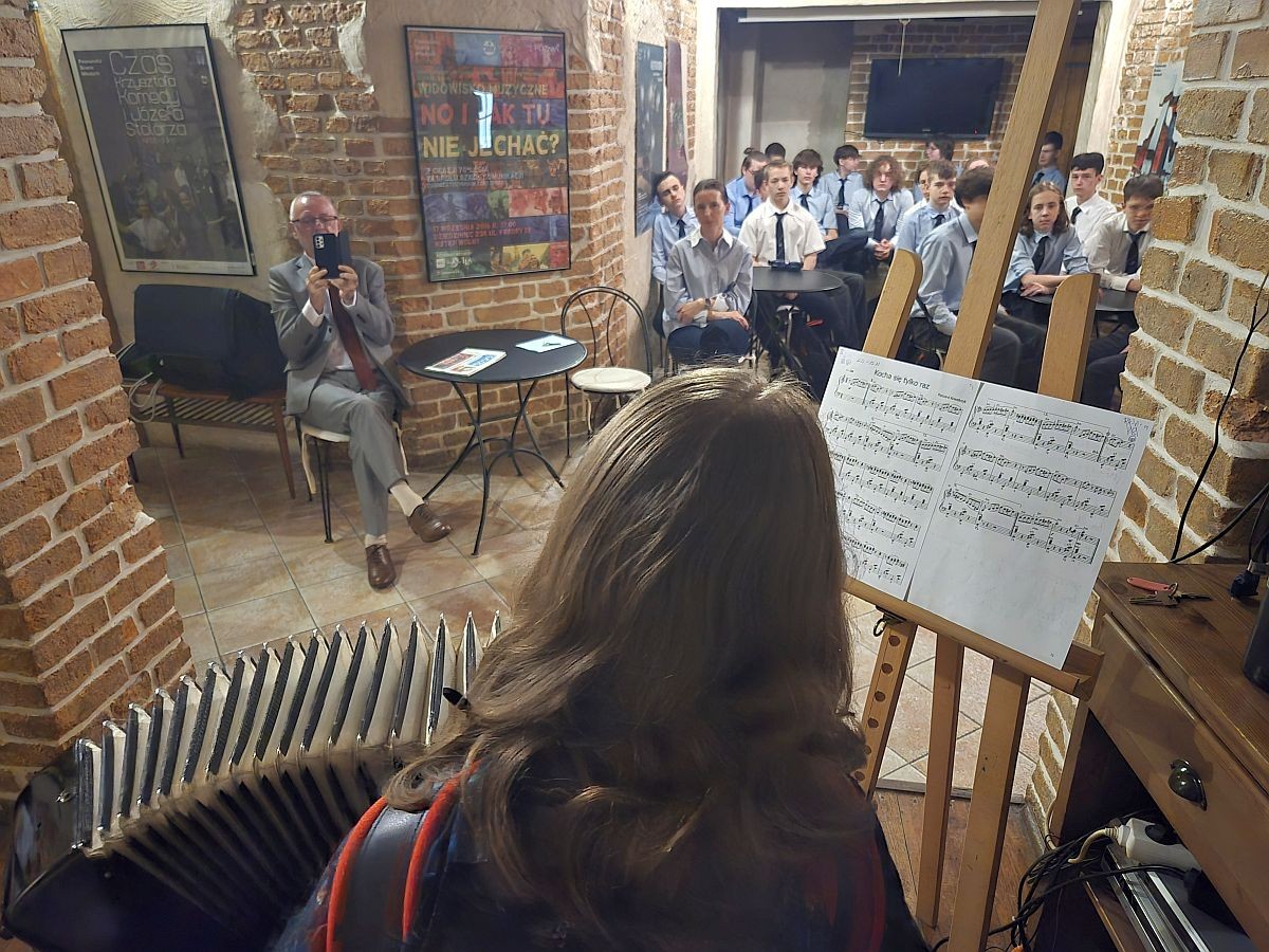 16 kwietnia 2025 roku w Piwnicy Artystycznej odbyło się wyjątkowe wydarzenie muzyczne, w którym uczestniczyli uczniowie klas 1C, 1D oraz 5C. Mini koncert poświęcony był pasji prof. dr hab. Ryszarda Kowalczyka – grze na akordeonie.
