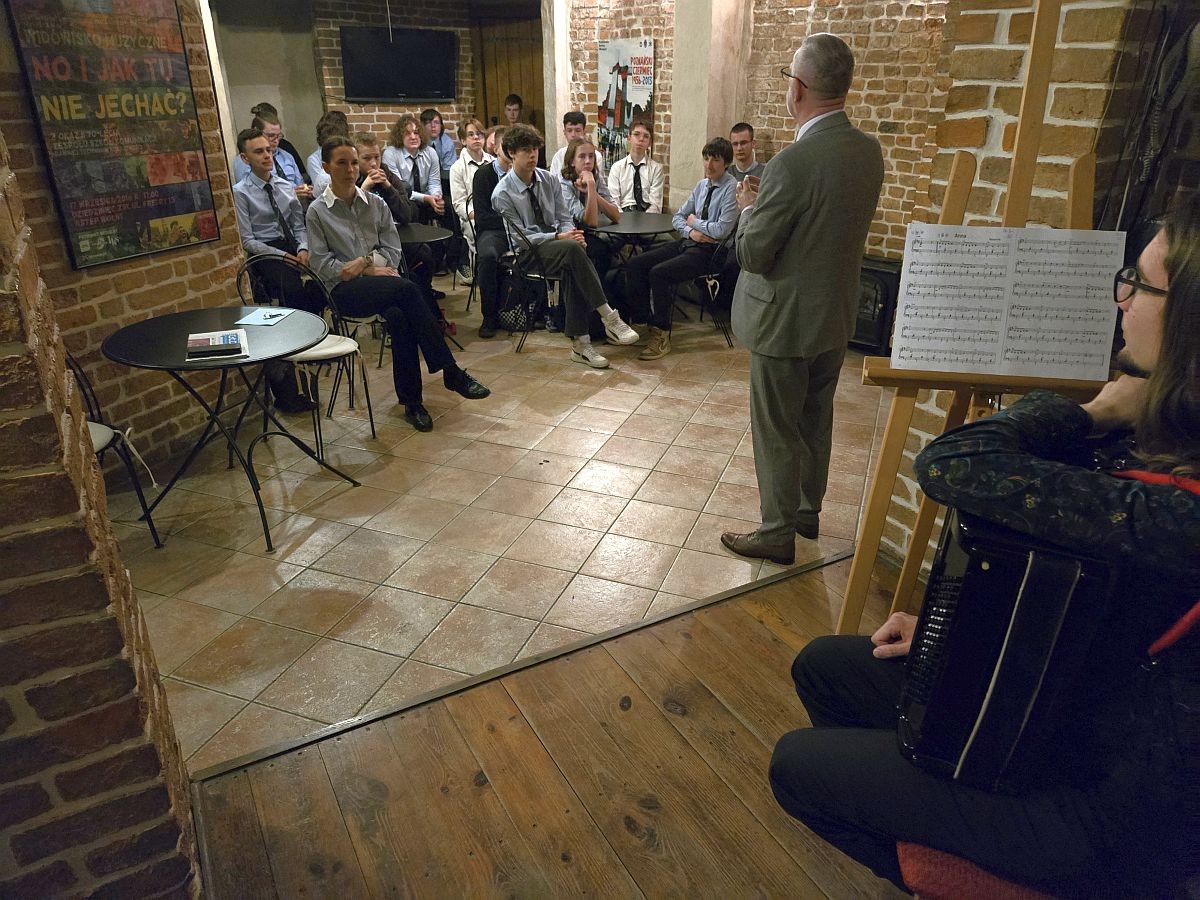 Koncert został zorganizowany dzięki zaangażowaniu Michała Króla z klasy 5C, który z pasją gra na akordeonie. Michał przygotował trzy utwory autorstwa profesora oraz zaprezentował kilka własnych kompozycji, zachwycając publiczność swoją wrażliwością muzyczną.
