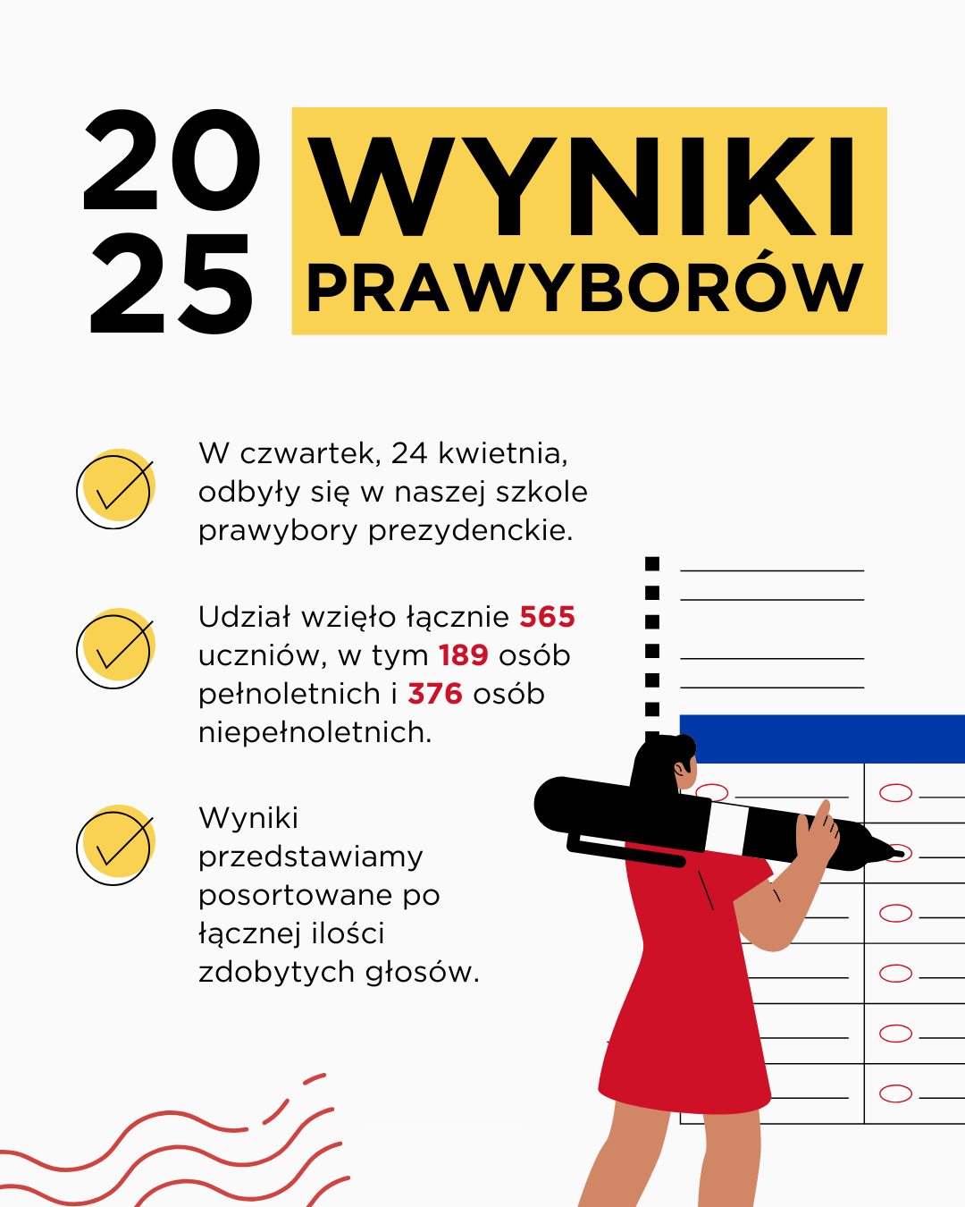 W naszej szkole – Zespole Szkół Komunikacji (ZSK) – również przeprowadziliśmy głosowanie. Uczniowie mogli sprawdzić, jak w praktyce wygląda oddawanie głosu i jak wielką wartość ma udział w wyborach.