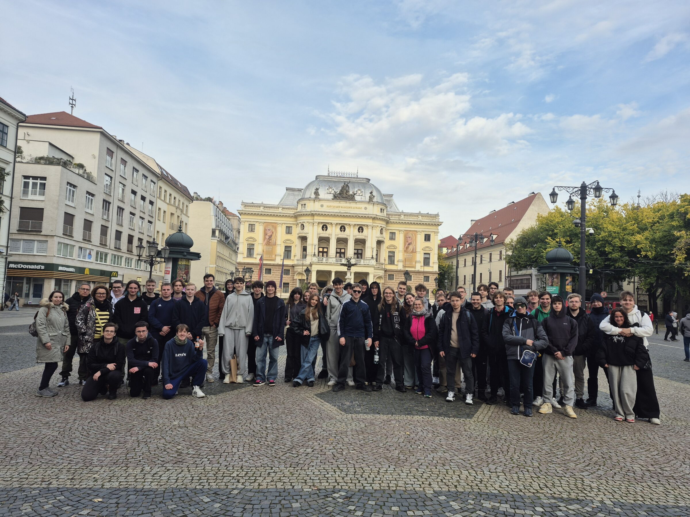 W dniach 21.10-24.10.25 klasy 4A i 4C uczestniczyły w wycieczce do Bratysławy, Budapesztu i do Morawskiego Krasu. Pierwszy dzień, dzień wyjazdu, rozpoczął się bardzo wcześnie, bo już o 4.00. Droga do Bratysławy prowadziła przez południową Polskę, Czechy, a w stolicy Słowacji znaleźliśmy się ok. 15.00. Ponad dwugodzinny spacer po bratysławskim Starym Mieście rozpoczęliśmy od Wzgórza Zamkowego. Przeszliśmy wąskimi uliczkami Bratysławy, przez ścisłe centrum, aż pod Teatr Narodowy. Potem krótki spacer nad Dunaj, bo nad tą rzeką leży stolica Słowacji. Po godzinie 17.00 wyruszyliśmy dalej: tym razem droga prowadziła do Budapesztu. W stolicy Węgier pojawiliśmy się wieczorem i zwiedzanie musieliśmy przełożyć na dzień kolejny. Środa była dniem przeznaczonym na zwiedzanie Szentendre, miejscowości pierwotnie zamieszkanej głównie przez serbską mniejszość. I dziś widać ślady ich kultury, głównie w postaci cerkwi czy charakterystycznej zabudowy.