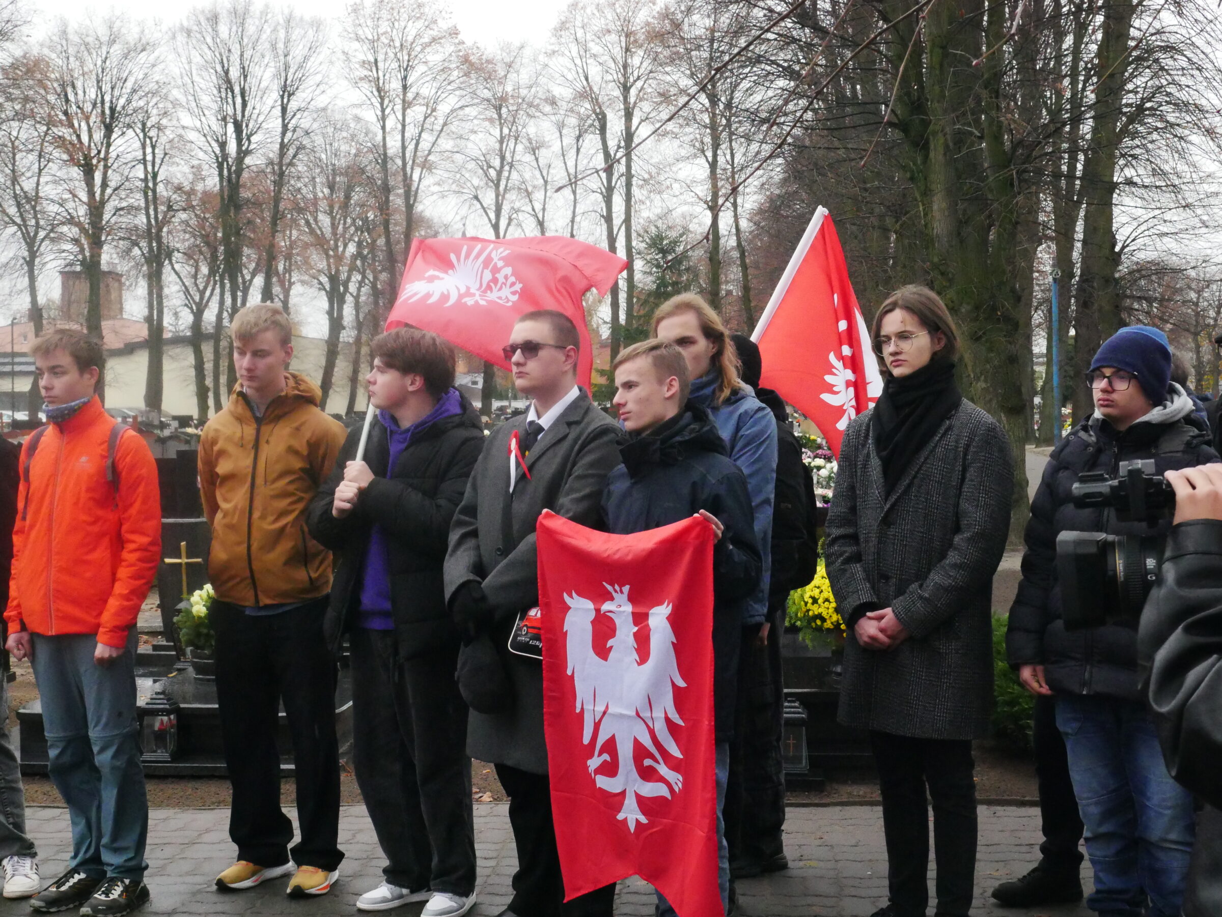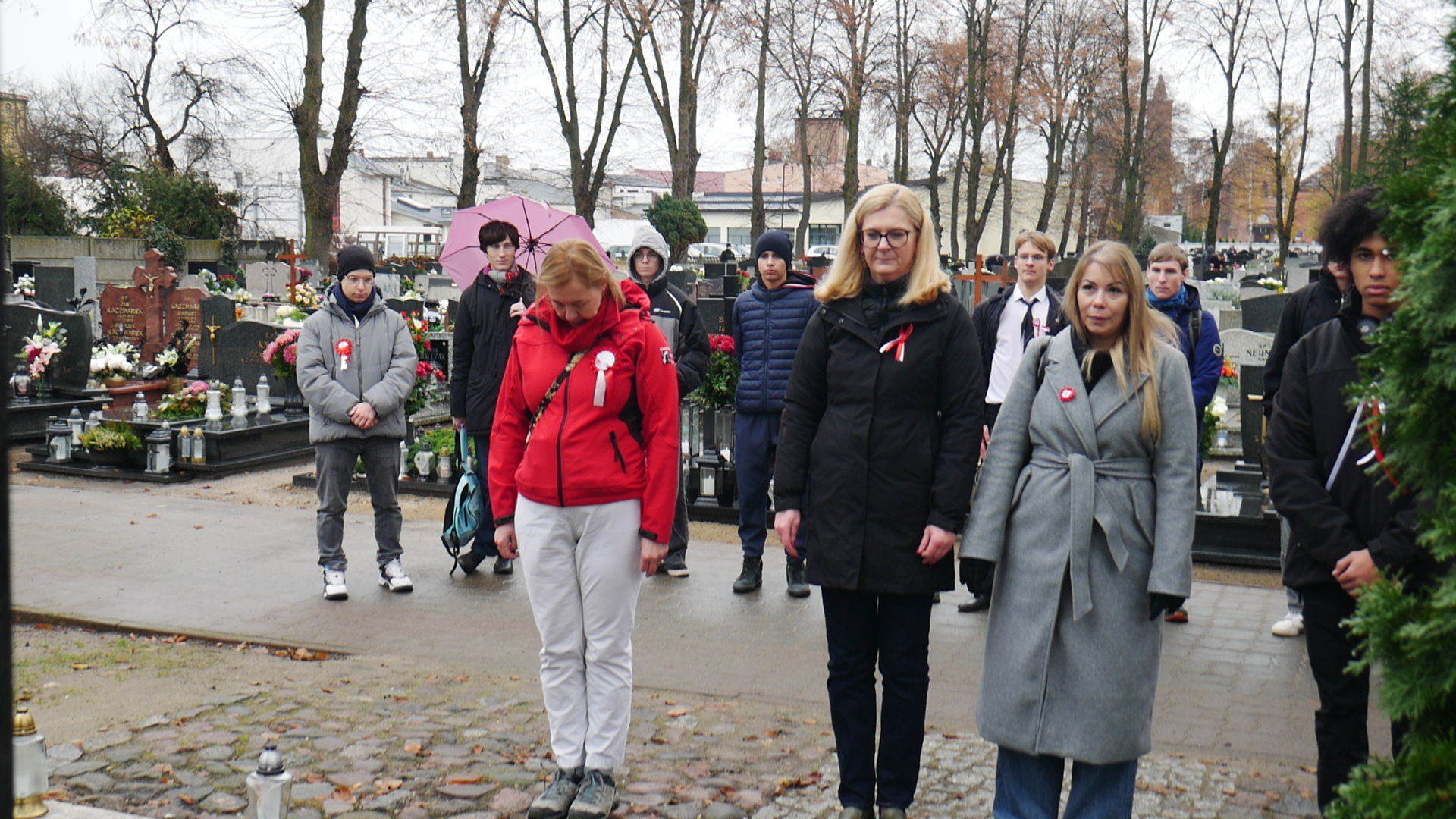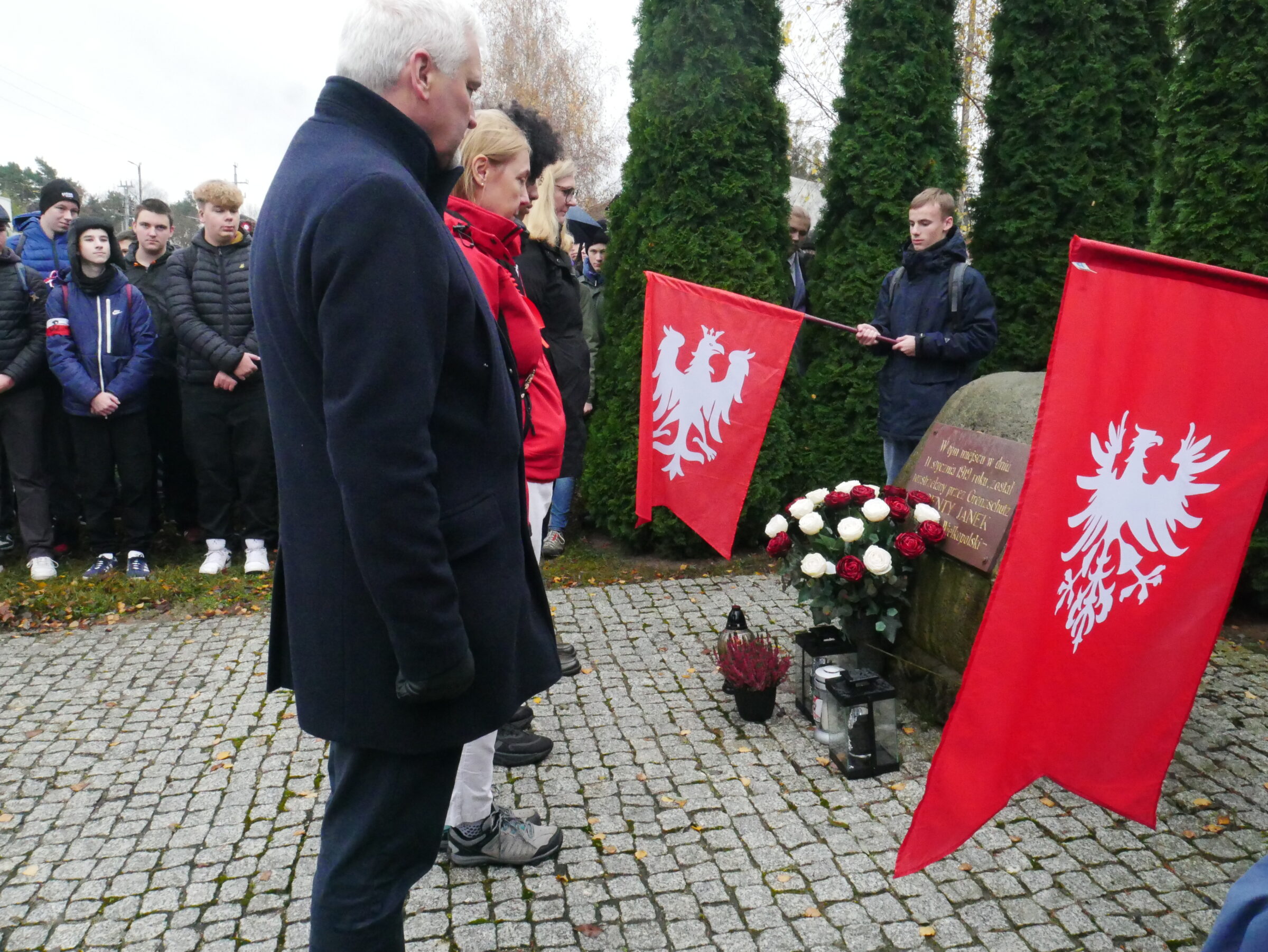 i nauczyciele wzięli udział w Apelu Poległych. Potem uczniowie w towarzystwie Pani dyrektor Pauliny Rejewskiej i burmistrza miasta Pana Tomasza Kurasińskiego zapalili znicz i złożyli kwiaty w miejscu pamięci.