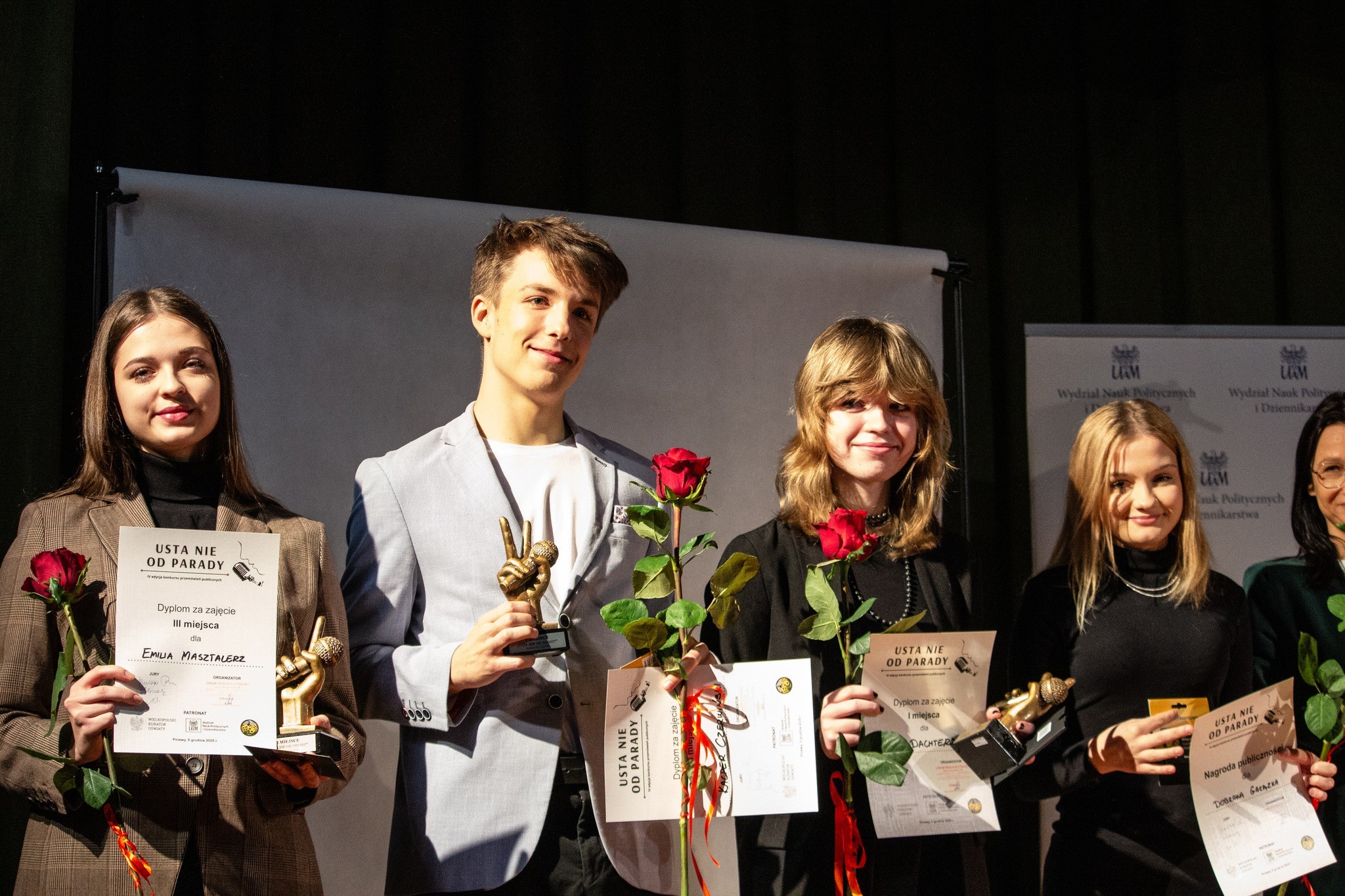Victoria realizowała w swoim wystąpieniu motyw przemocy , Kacper przemówienie zbudował wokół trudności znalezienia pracy przez młodych ludzi i doradztwa zawodowego, Filip mówił o konieczności poszukiwania prawdy w mediach, Wojtek o solidarności i empatii wobec innych.