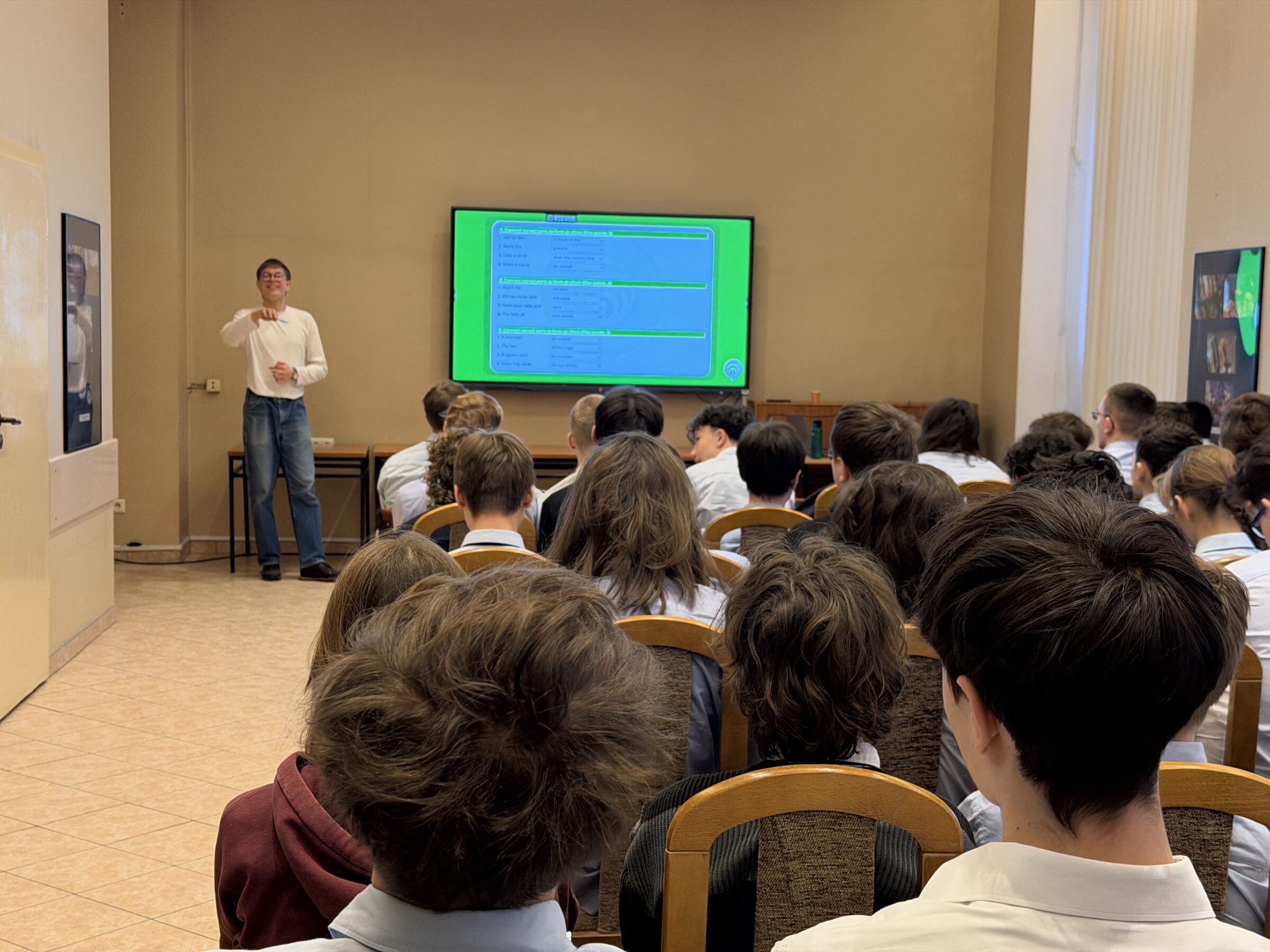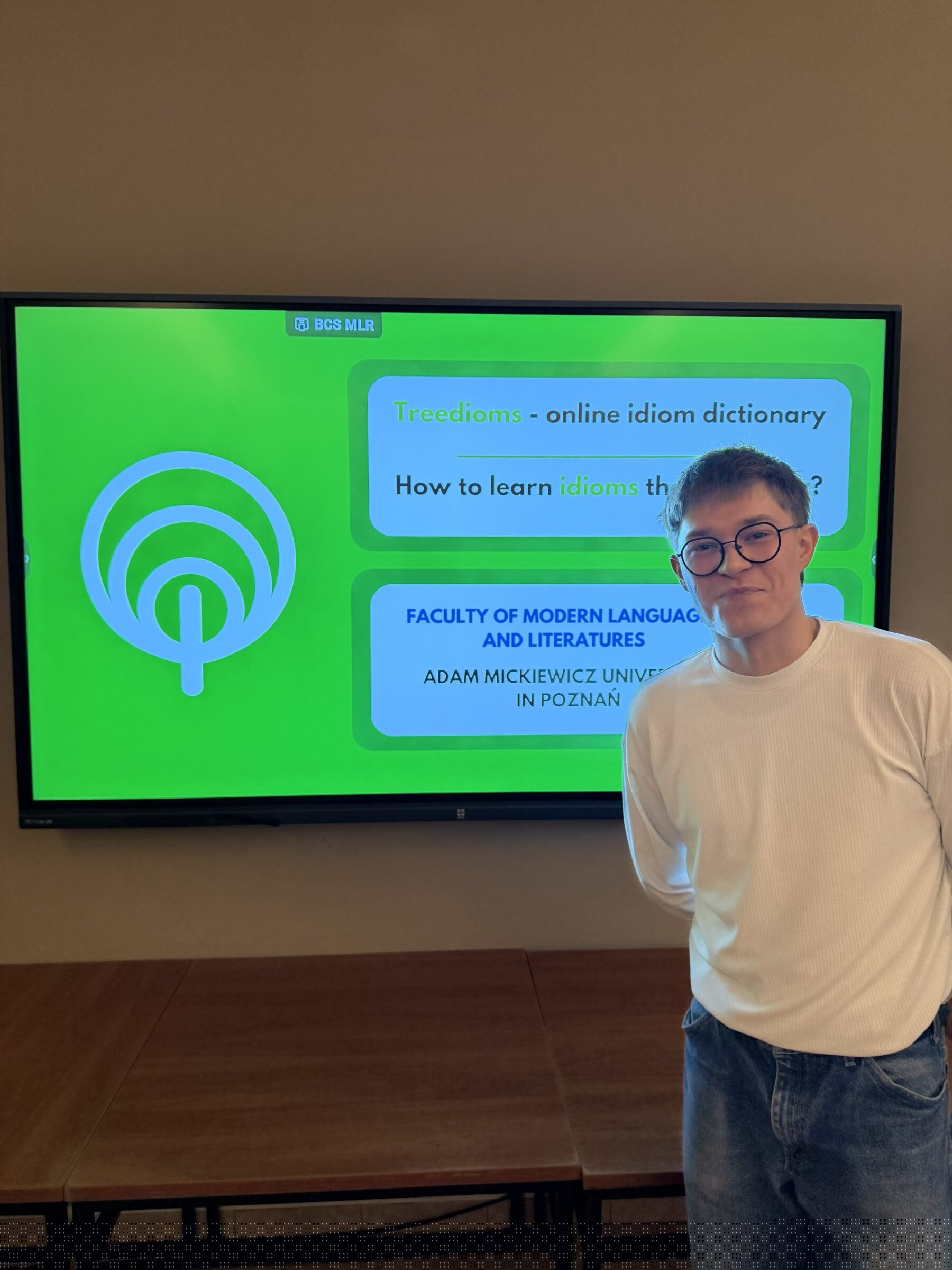 Kolejnym ważnym punktem programu było spotkanie z panem Michałem Ejankowskim z Wydziału Neofilologii UAM, współtwórcą innowacyjnej platformy edukacyjnej Treedioms. Podczas wykładu uczniowie z klas 1A, 1B i 2 B mieli okazję dowiedzieć się jak nowoczesne technologie mogą wspierać naukę języka angielskiego, zwłaszcza w obszarze idiomów. Prelegent opowiedział o drodze od pomysłu do realizacji projektu, znaczeniu idiomów w praktycznej znajomości języka oraz o kompetencjach potrzebnych do tworzenia projektów edukacyjnych online. Spotkanie było cenną lekcją łączenia wiedzy językowej z kreatywnością i technologią.