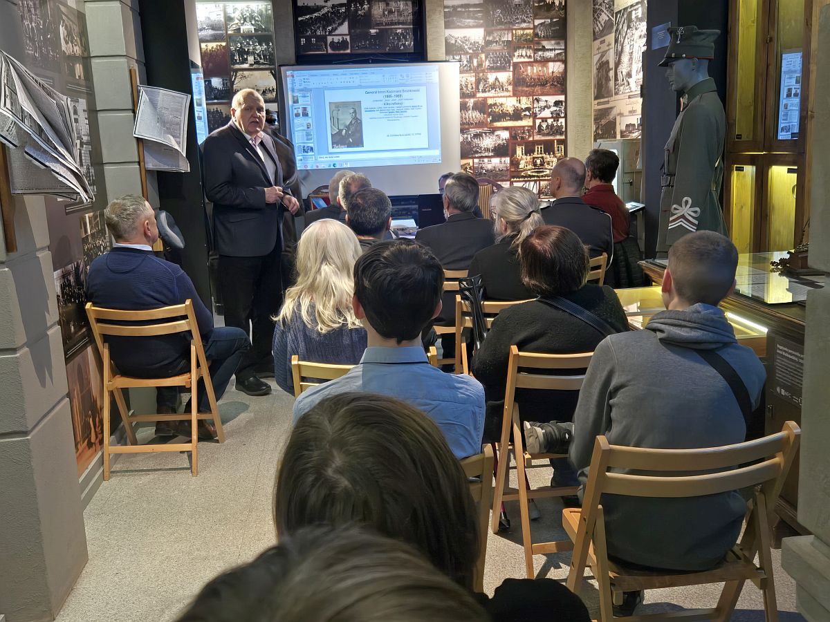 Filip Jankowiak, Wiktor Miszkiewicz, Olivier Kosecki, Wojciech Rydzewski, Antoni Framski, Filip Wiórek i Bodia Ryzbuk, brali udział w prelekcji pod tytułem „Generał broni Kazimierz Sosnkowski -Żołnierz Niepodległości (wspomnienie i odznaczenia)”.