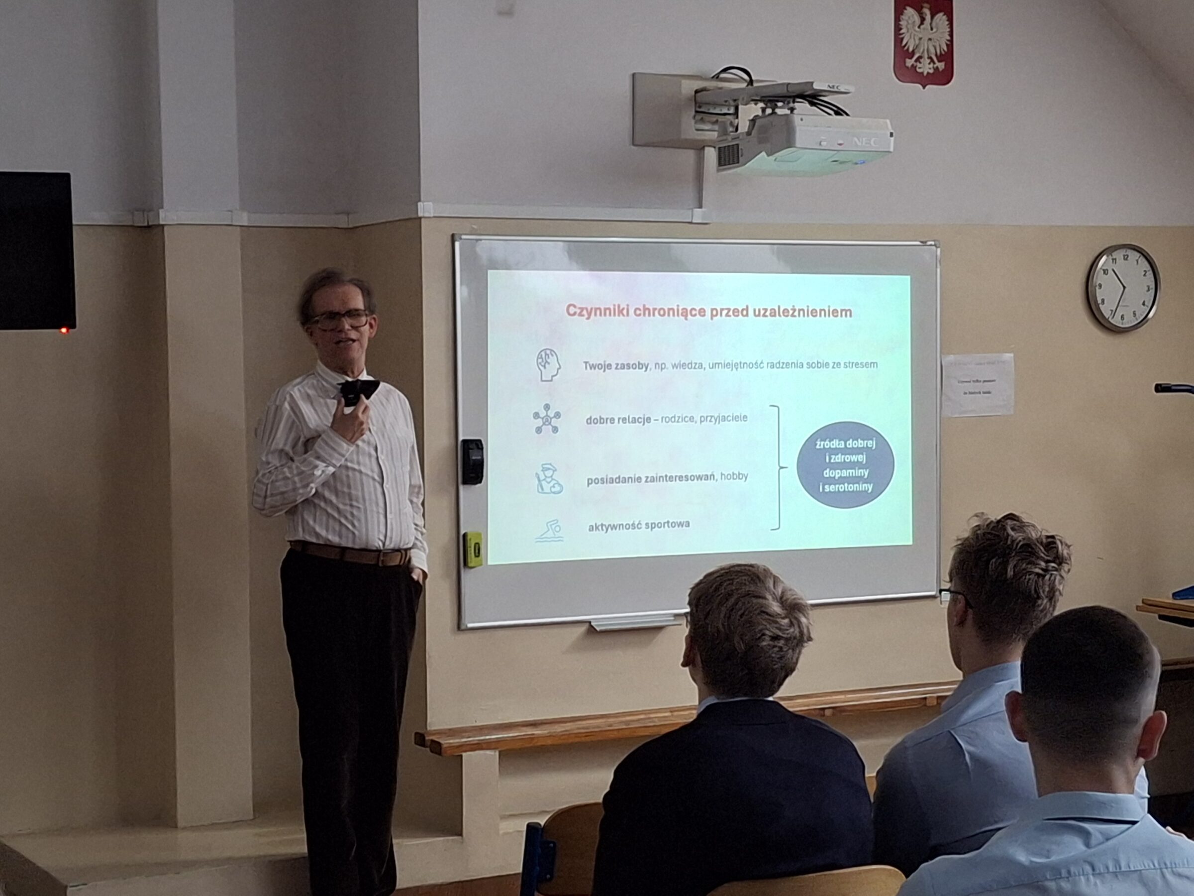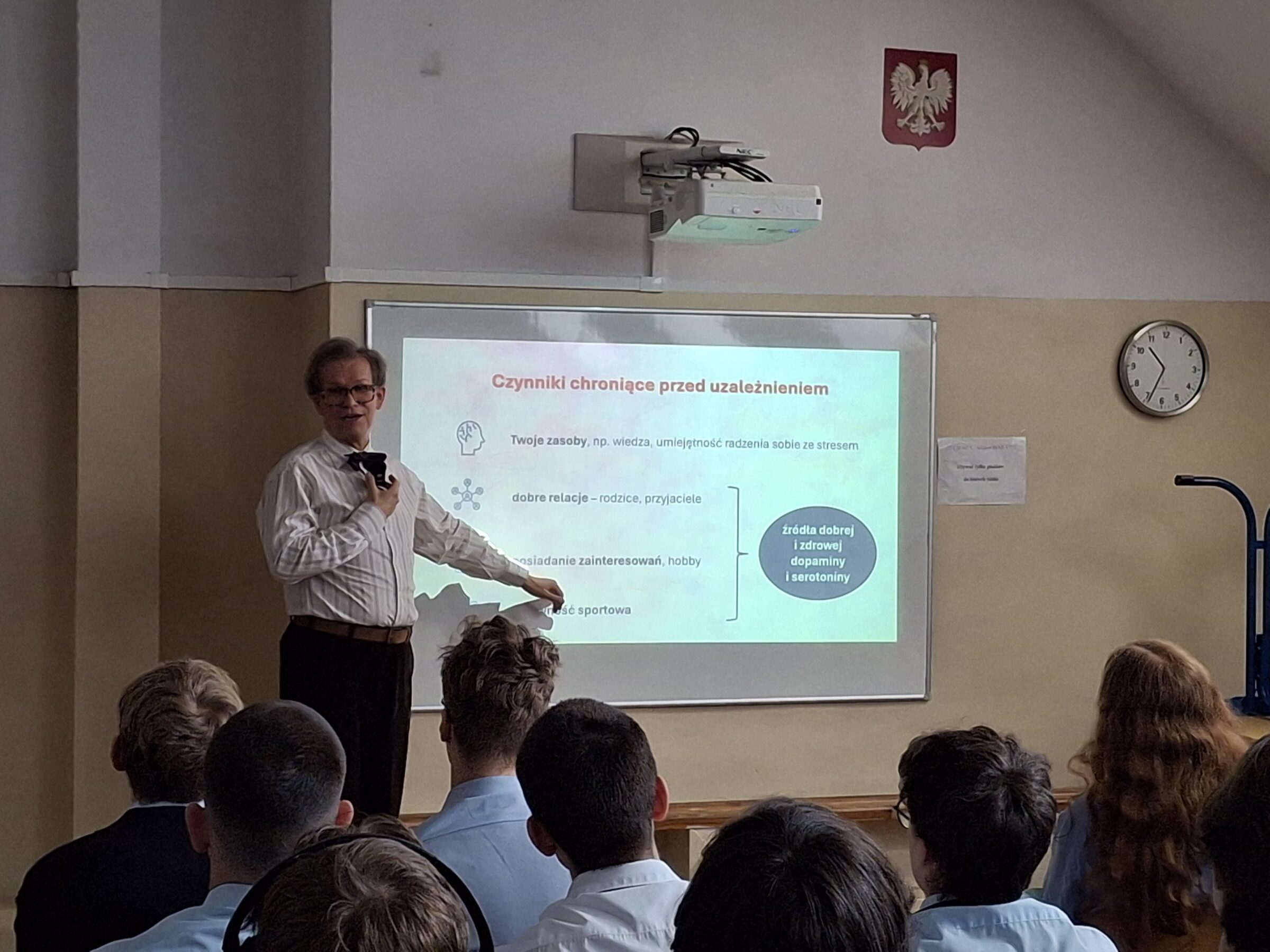 Kolejne wydarzenia w ramach Tygodnia Mózgu odbyły się w czwartek i również dostarczyły wielu cennych treści. Prelekcje poświęcone były wpływowi substancji psychoaktywnych na funkcjonowanie człowieka, ze szczególnym uwzględnieniem pracy mózgu. Spotkania nie tylko poszerzyły wiedzę uczniów, ale także skłoniły ich do głębokiej refleksji.