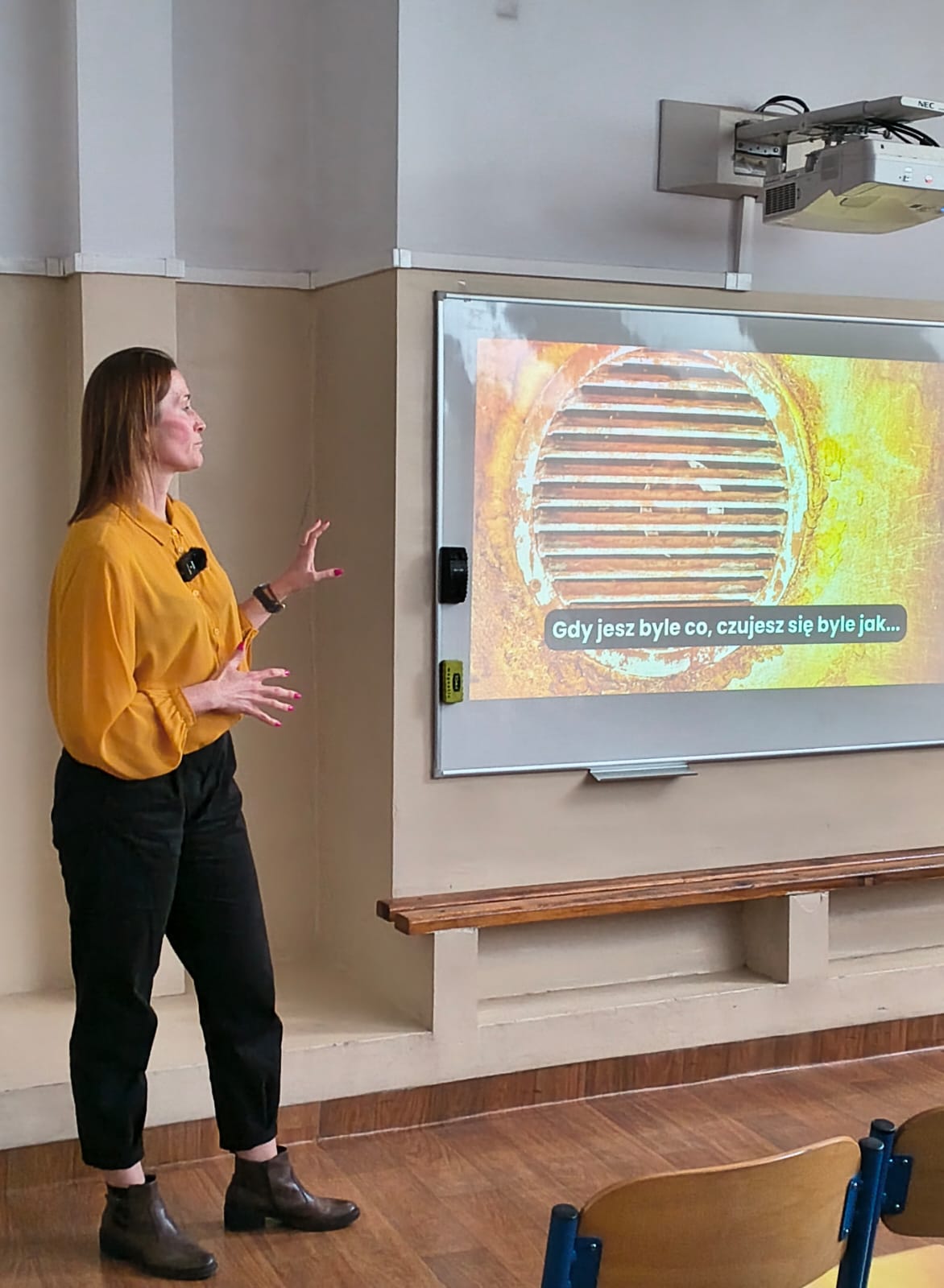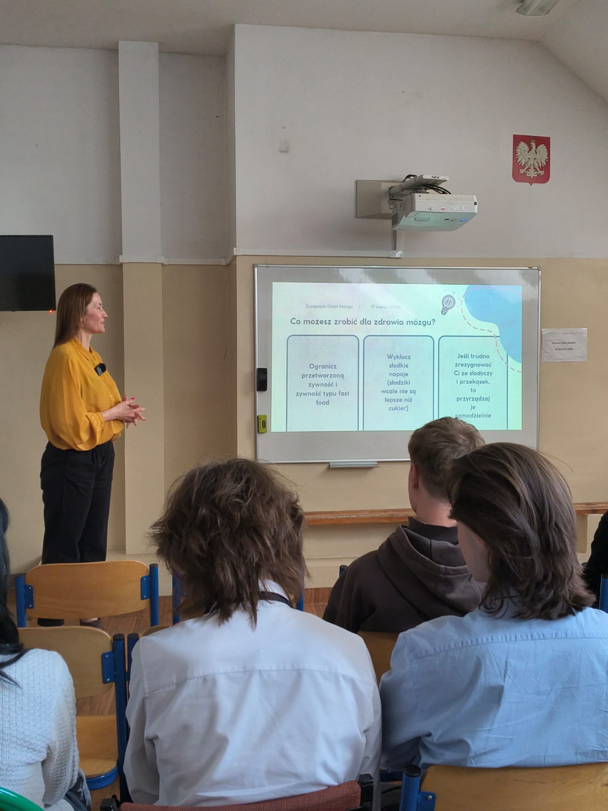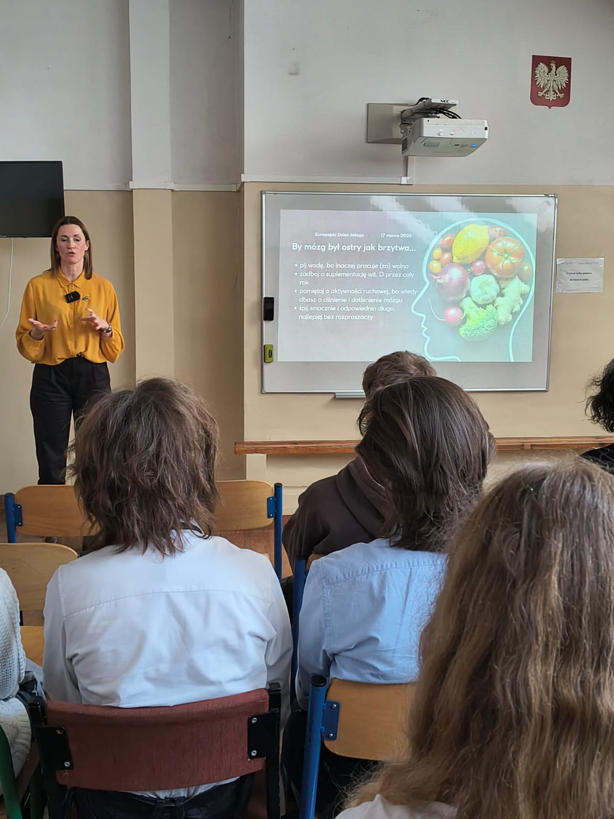 Druga część wydarzenia należała do dietetyk Agaty Koniecznej, która zwróciła uwagę na ogromne znaczenie odżywiania dla pracy mózgu. Uczniowie dowiedzieli się również, jak istotną rolę odgrywają jelita, często nazywane „drugim mózgiem”, oraz jak dieta wpływa na nasze samopoczucie, koncentrację i ogólne funkcjonowanie organizmu.